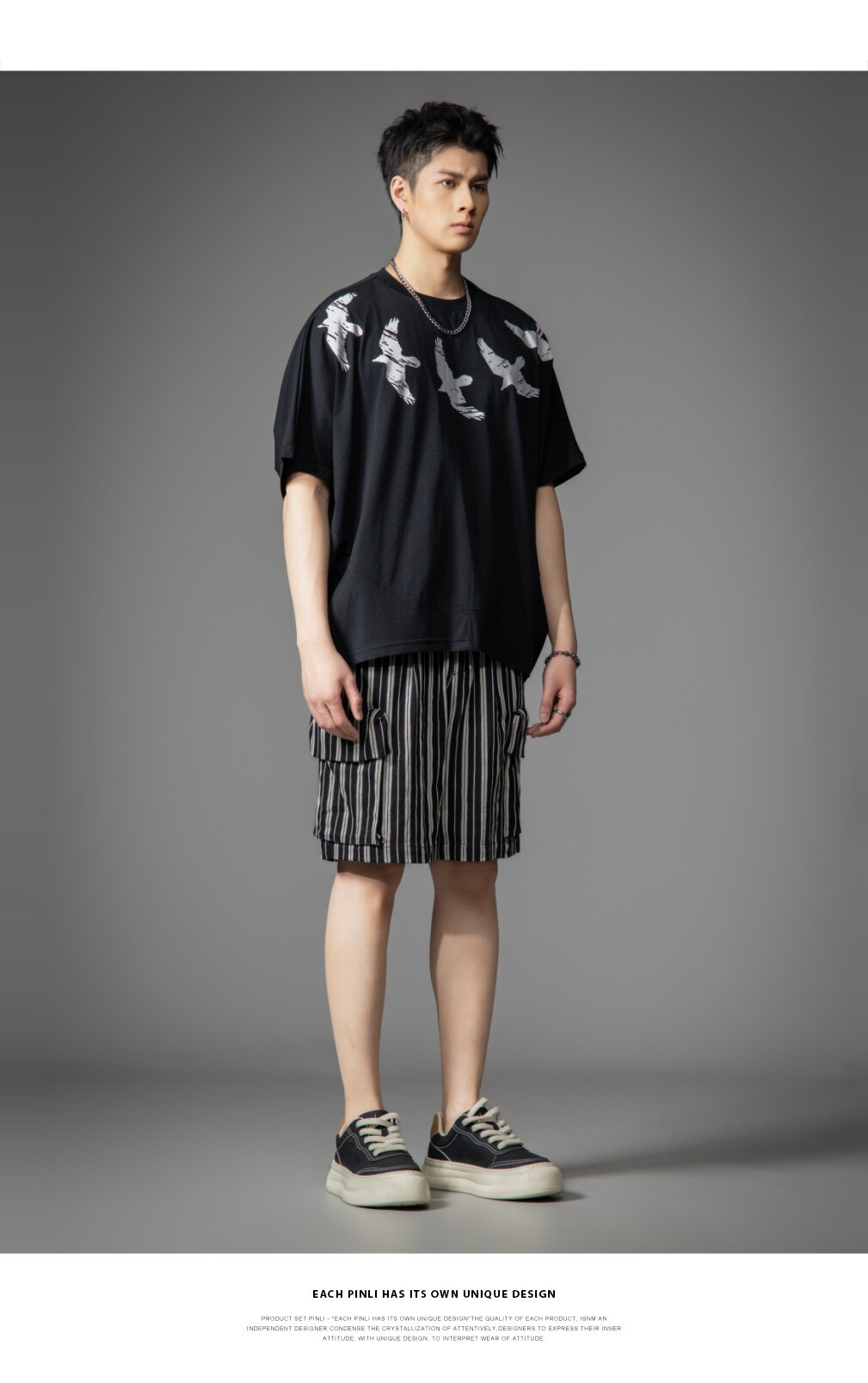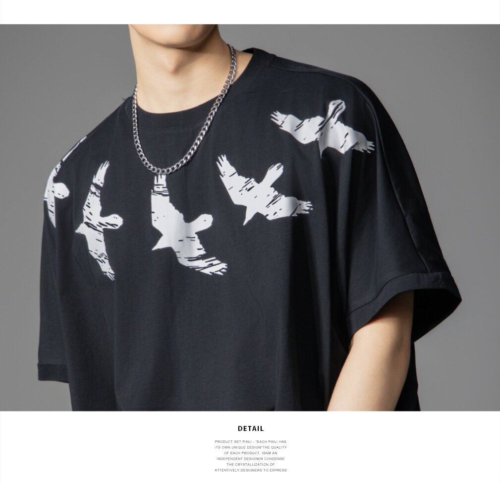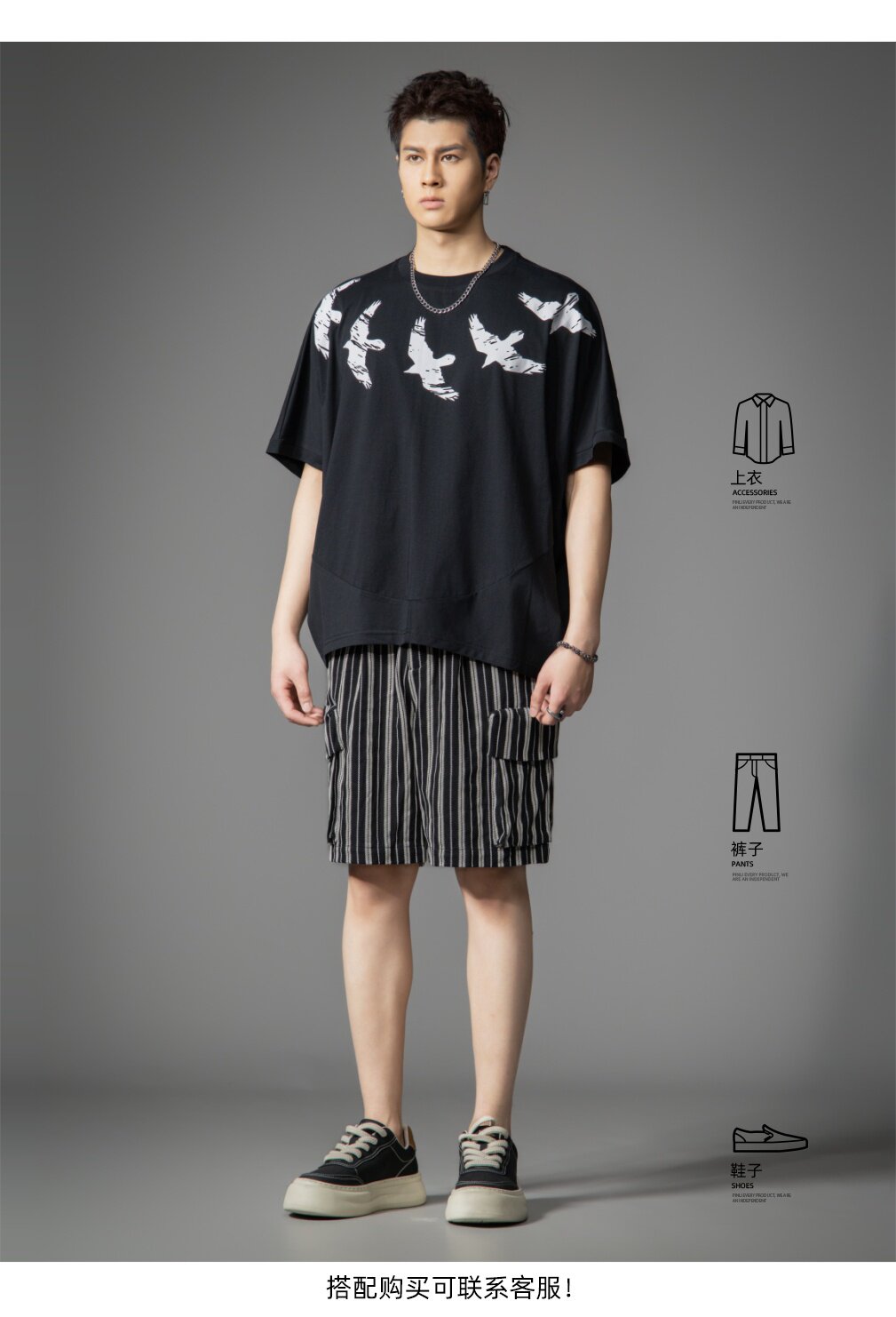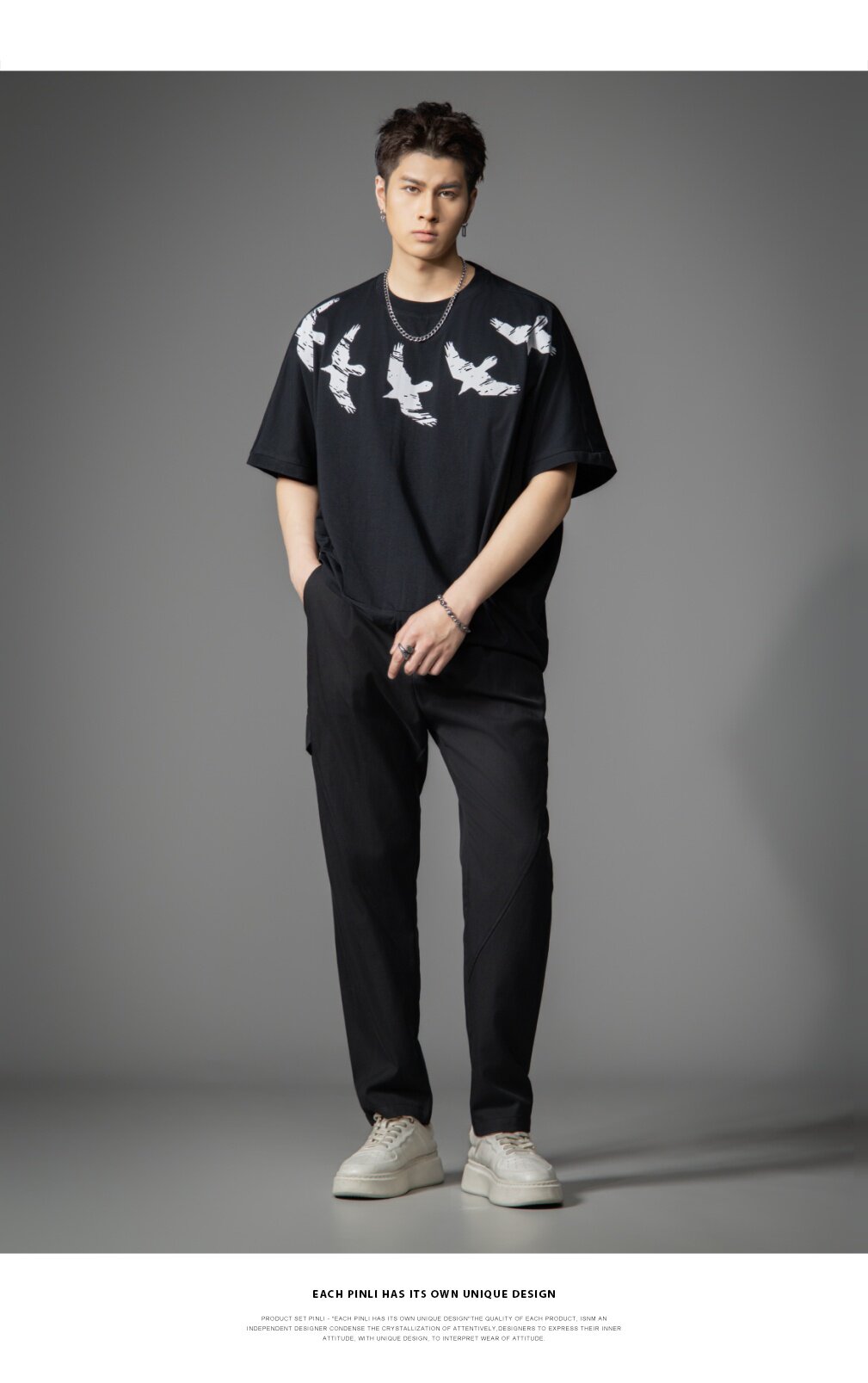 PINLI品立2026春季新款男士宽松插肩袖动物印花圆领短袖T恤潮牌B262111016
