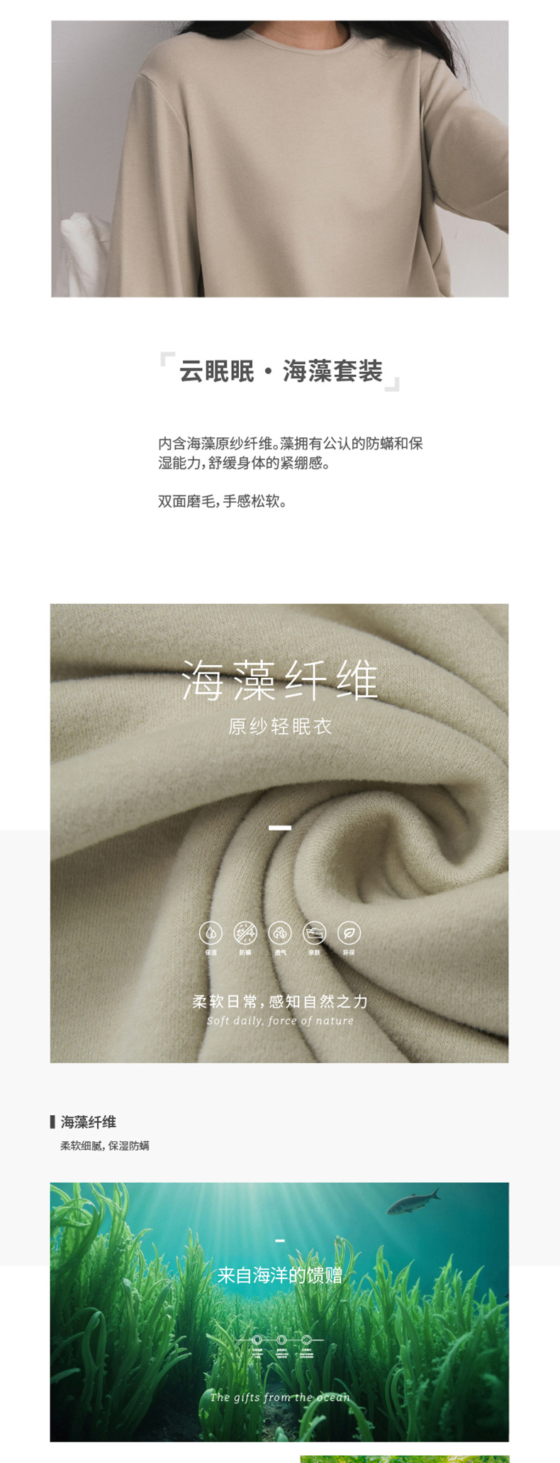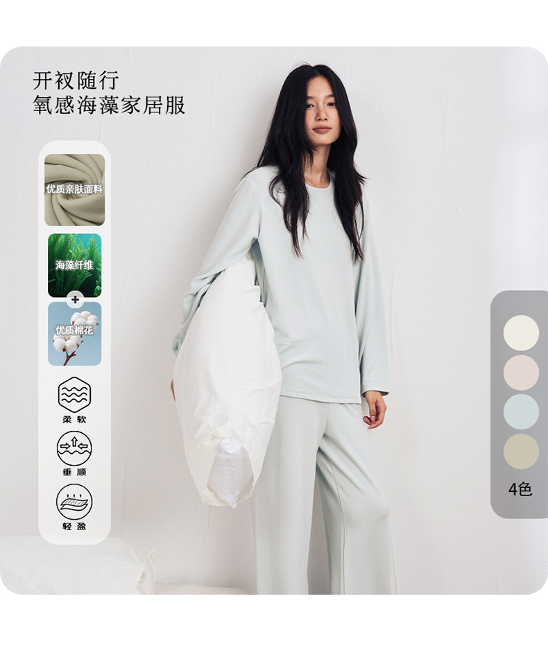 [屁侠推荐]欧可纪双面磨毛家居服套装 珍稀海藻纤维 保湿防螨