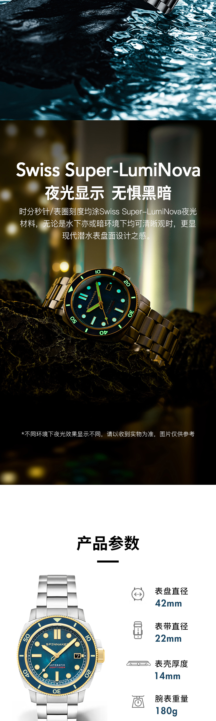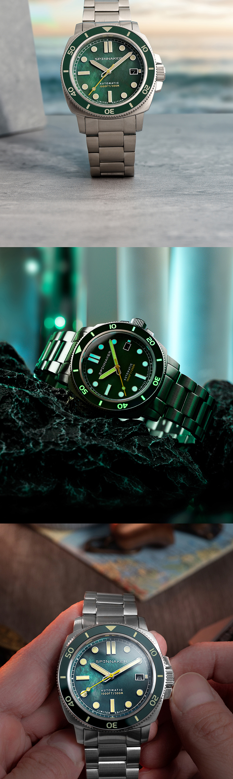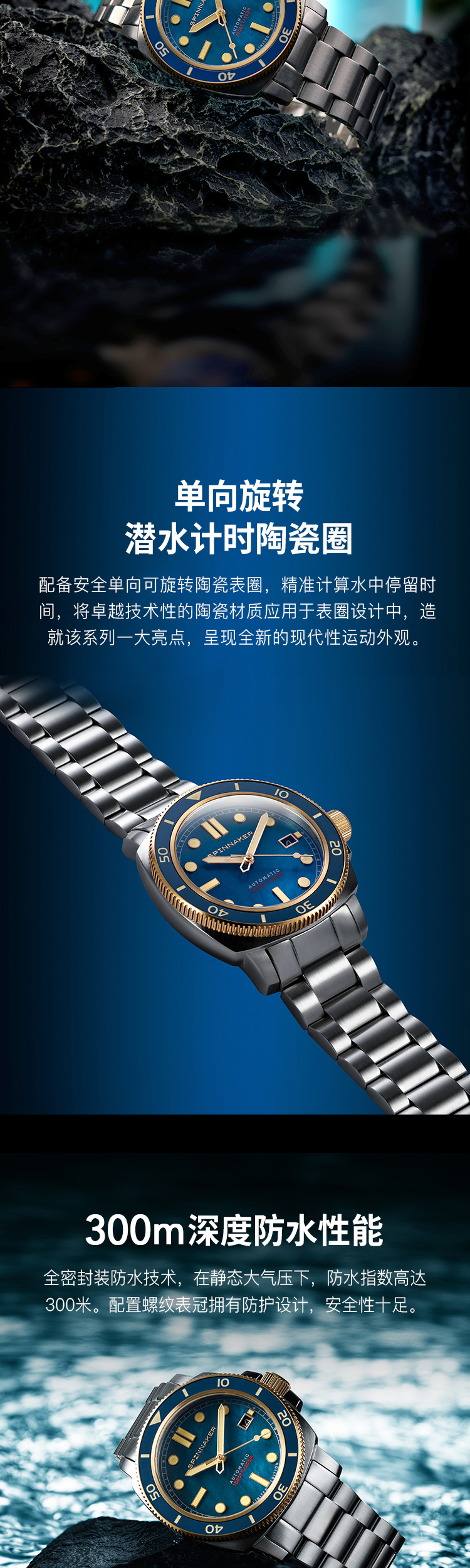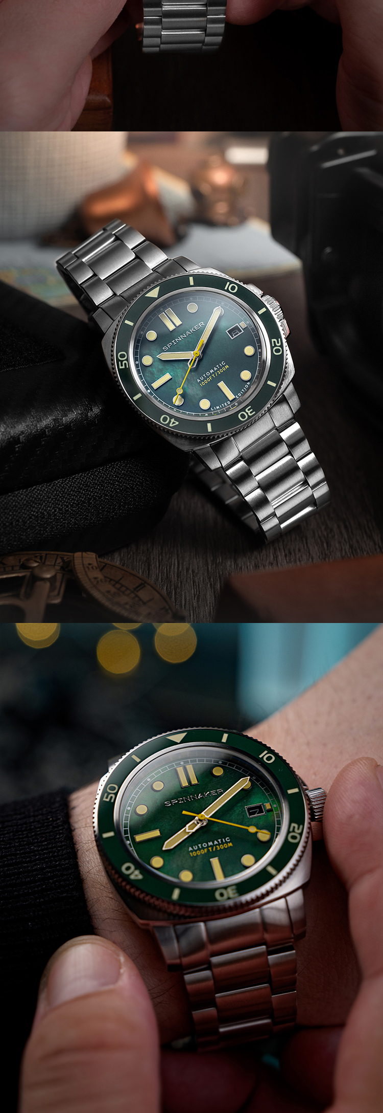 新款SPINNAKER三角帆天然贝母盘自动机械手表限量版夜光防水5106