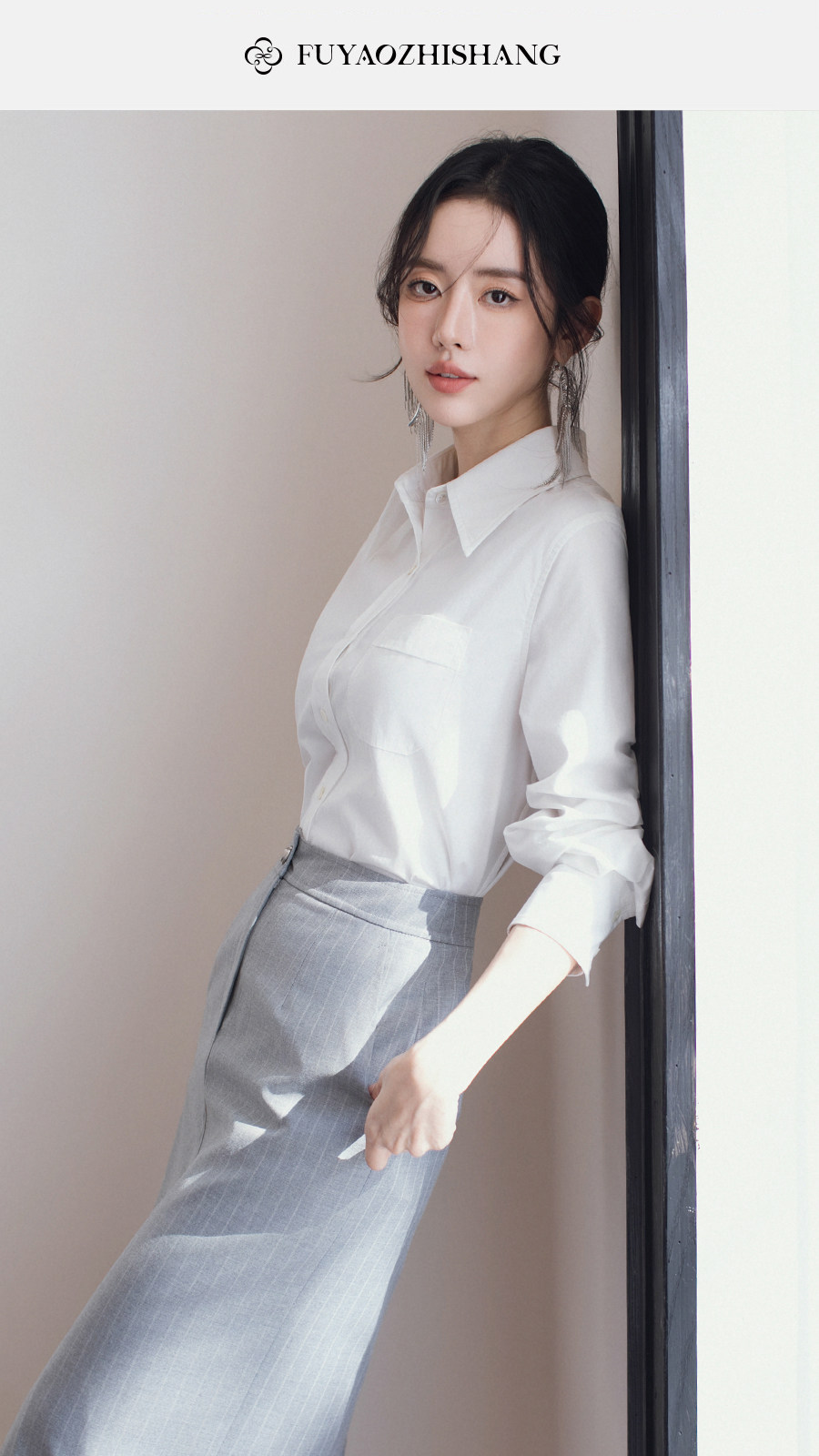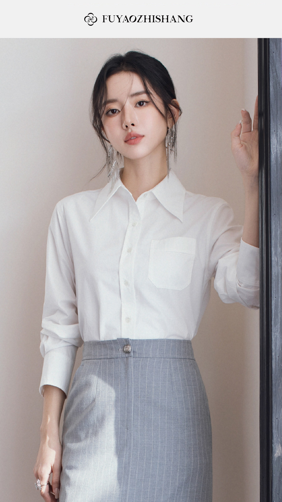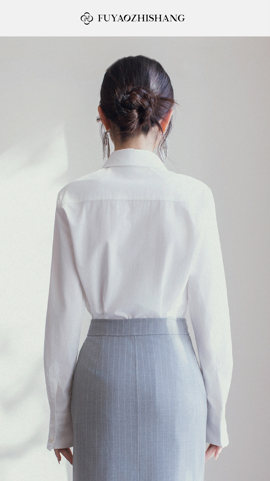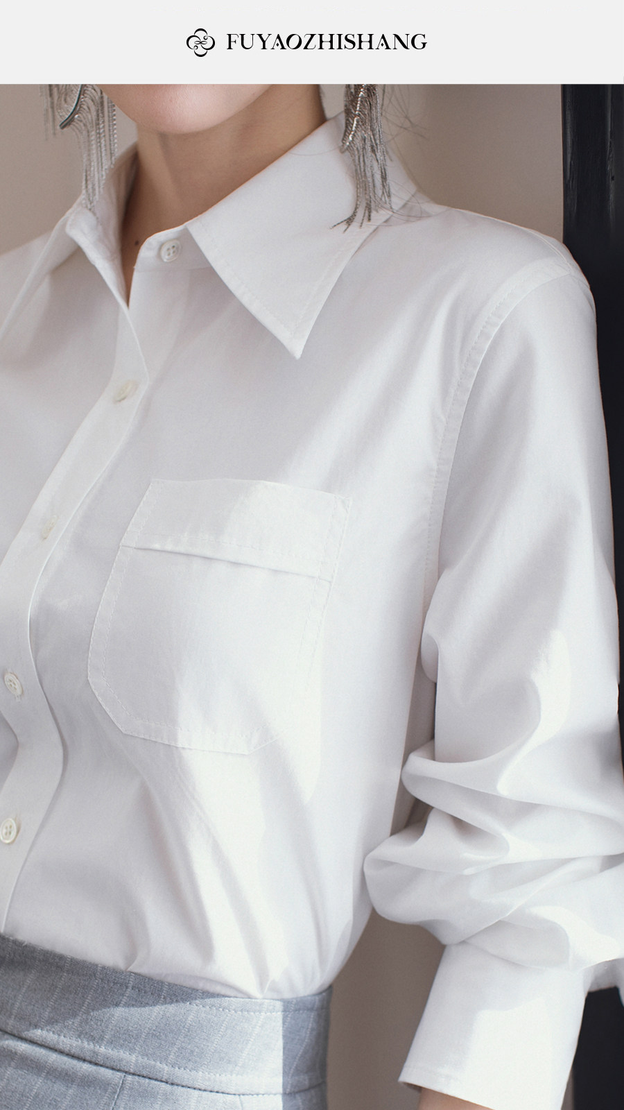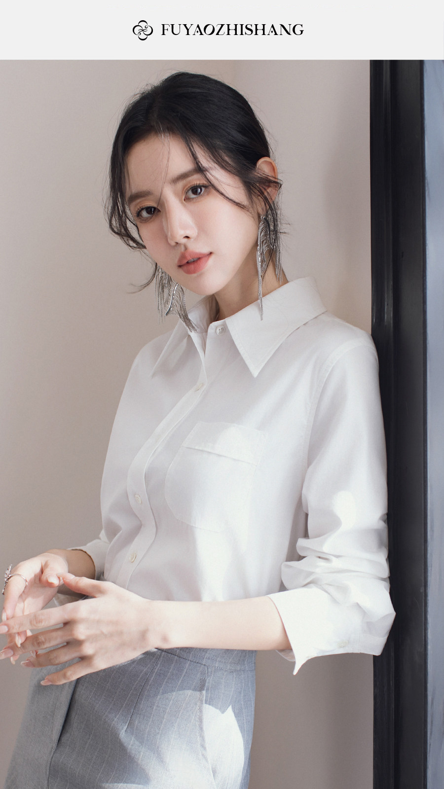 FUYAO扶摇直上 简约风白衬衫女春季长袖翻领衬衣通勤职场正装上衣