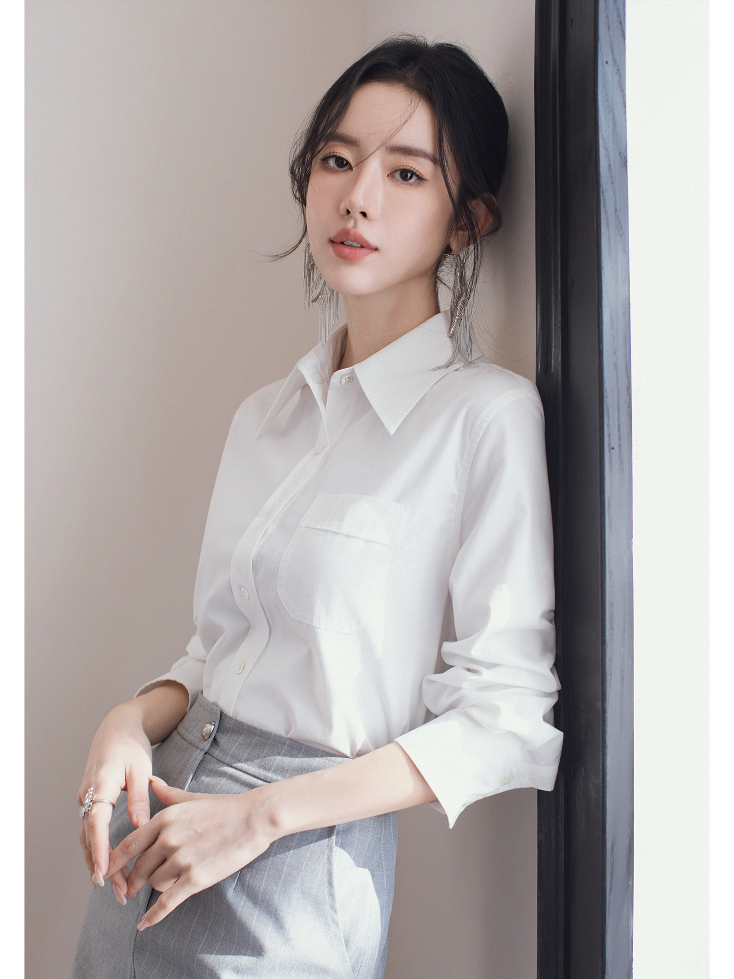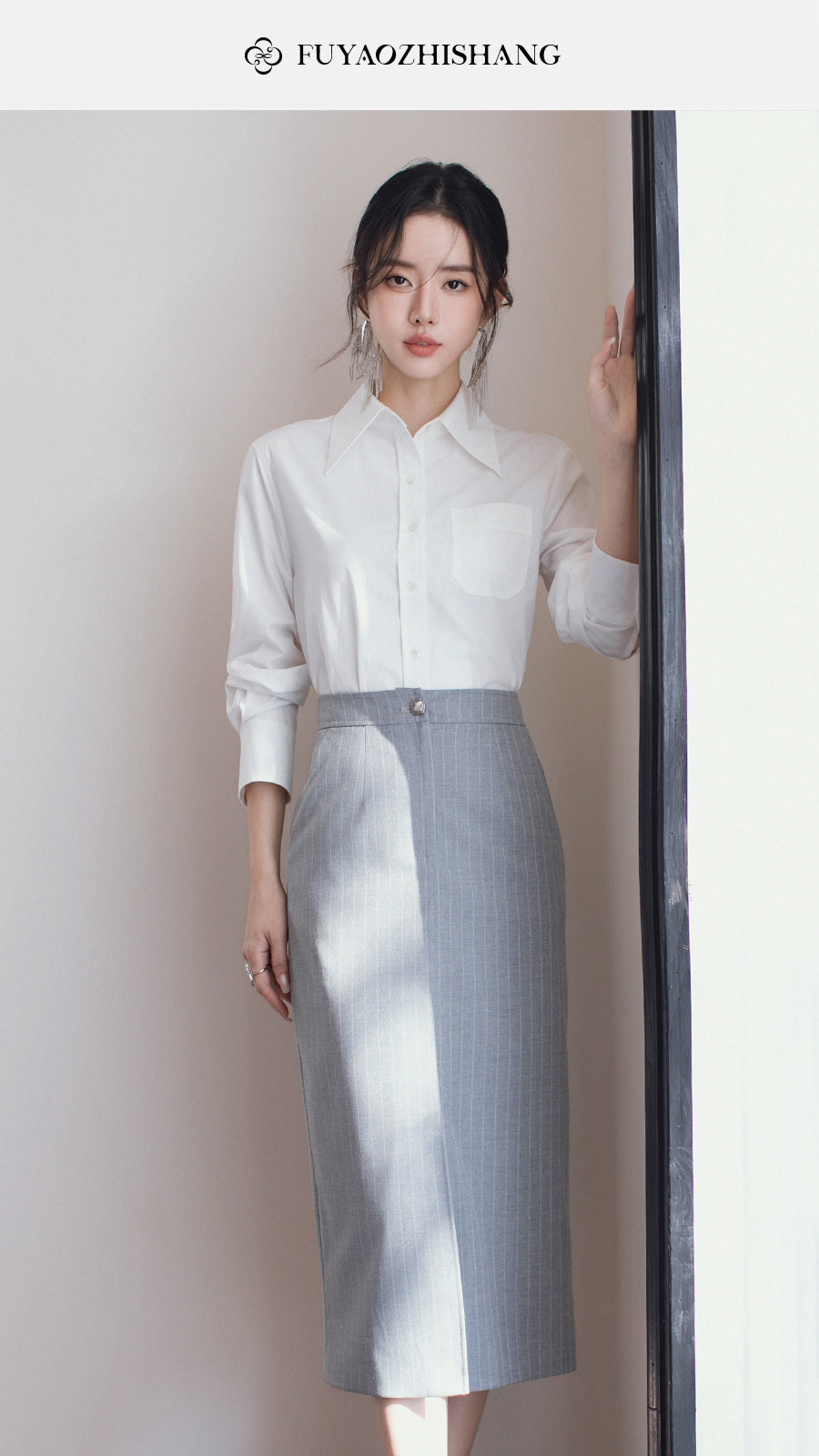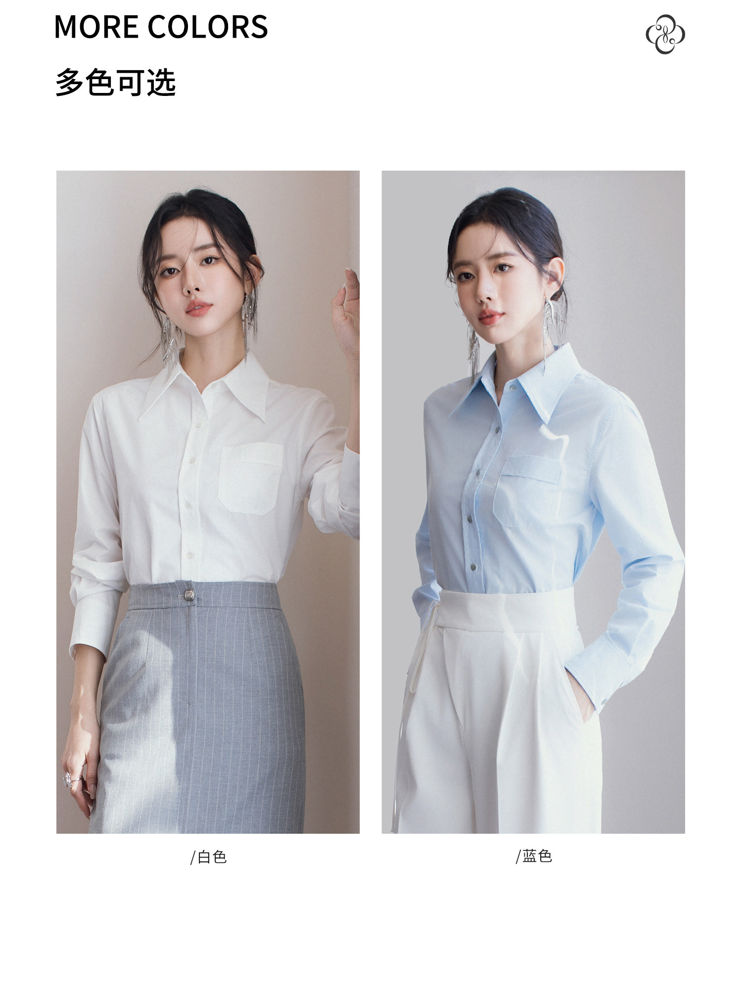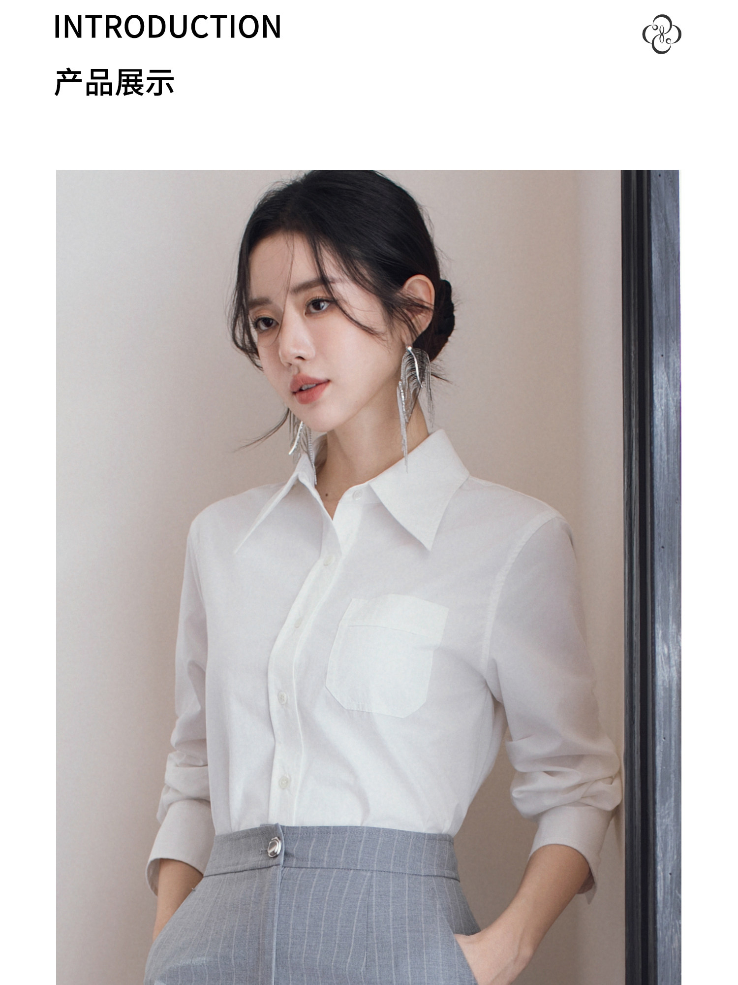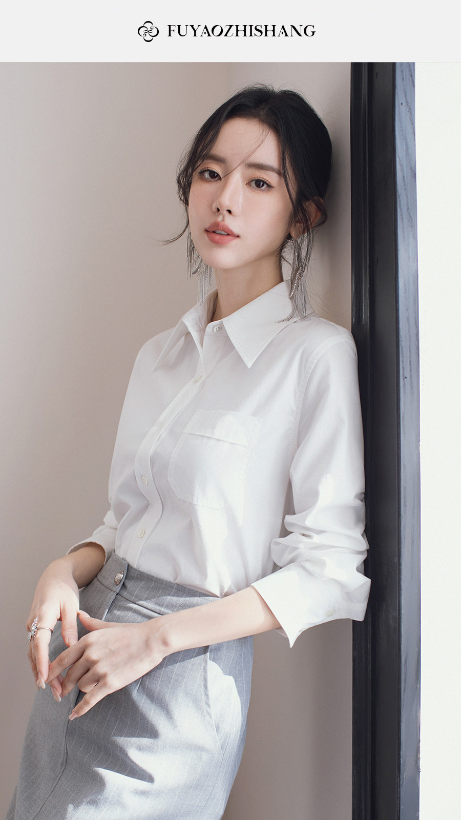 FUYAO扶摇直上 简约风白衬衫女春季长袖翻领衬衣通勤职场正装上衣