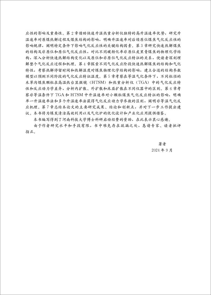 本 书 利 用 更 接 近 工 业 气 化 炉 快 速 升 温 装 置 制 备 不 同 条 件 下 的 快 速 煤 焦 , 对 快 速 升 温