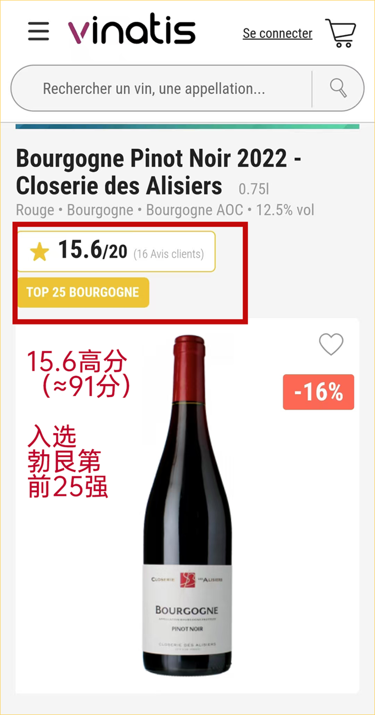 “这款2022年的勃艮第黑皮诺既复杂又精致,美味的红色、黑色浆果与熟热带水果交织于鼻尖,灌木丛、胡椒粉的和谐香气洋溢于舌尖,圆滑又平衡,如果您正在寻找一款完整且无经济负担的勃艮第红,那么Closerie des Alisiers黑皮诺将成为您的醉佳之选。”