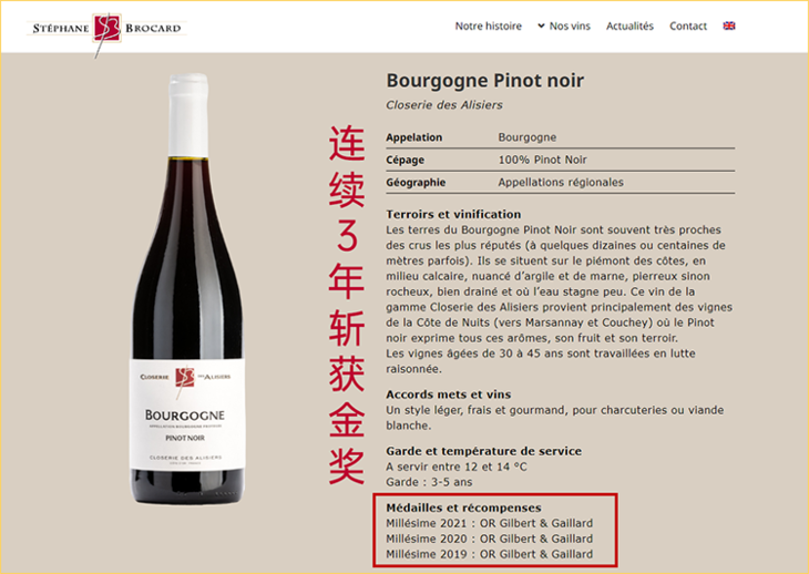 连续3年GG金奖!Vinatis勃艮第前25!爱丽泽庄园勃艮第干红 Stephane Brocard Bourgogne Pinot Noir Closerie des Alisiers 2023