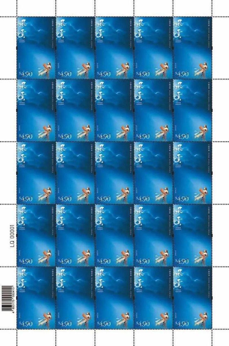 第二枚小型张很特别,采用了漂亮的烫金工艺,面值20港元。