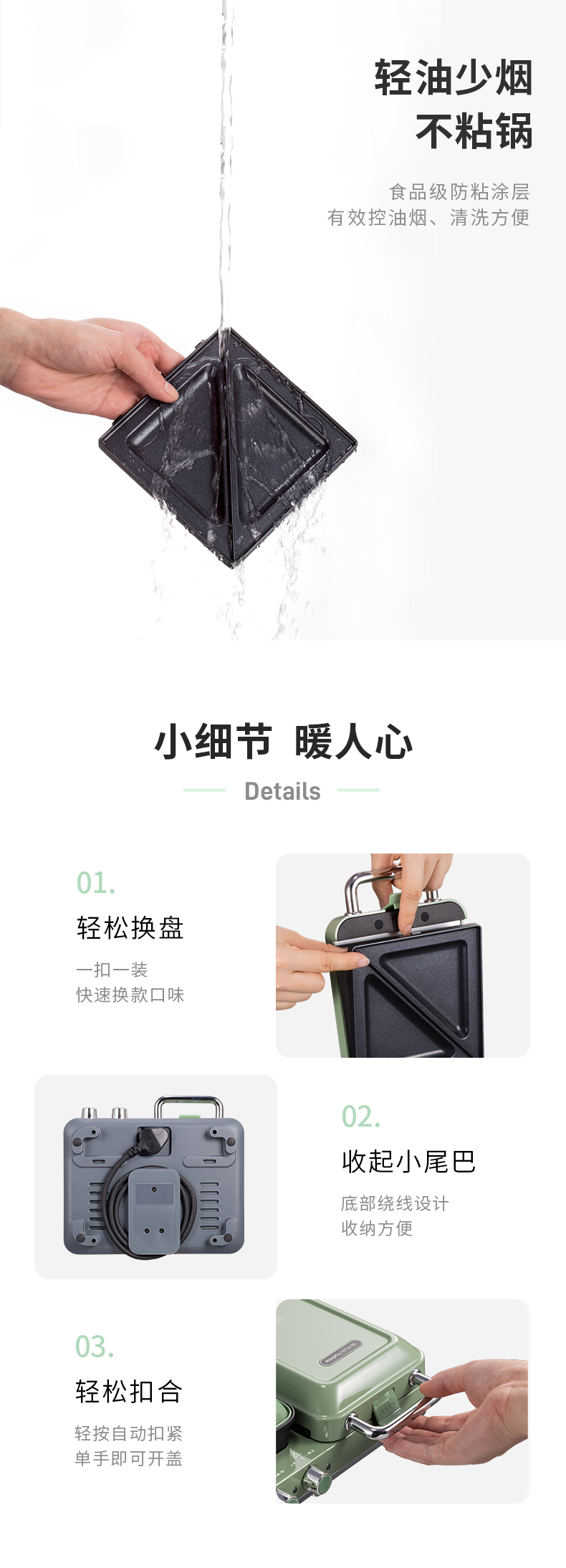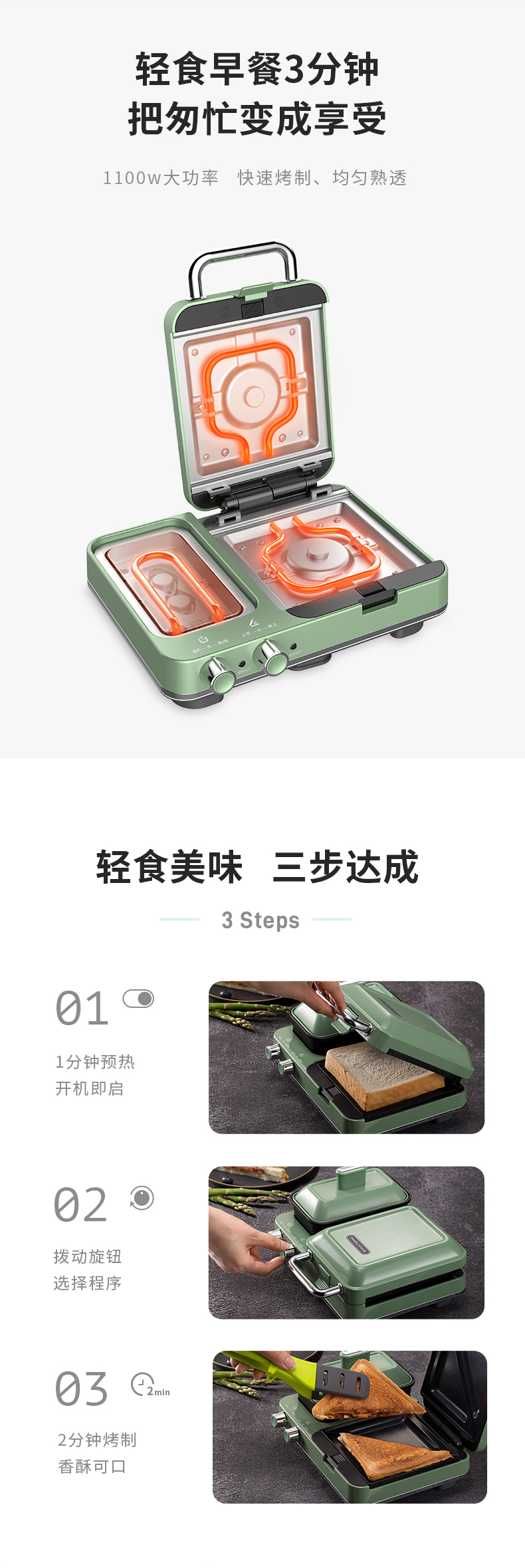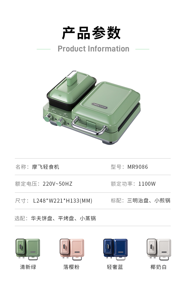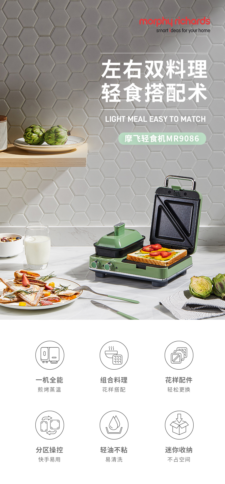 【6F】英国摩飞多功能早餐机三明治轻食机小型家用华夫饼机吐司压烤机MR9086