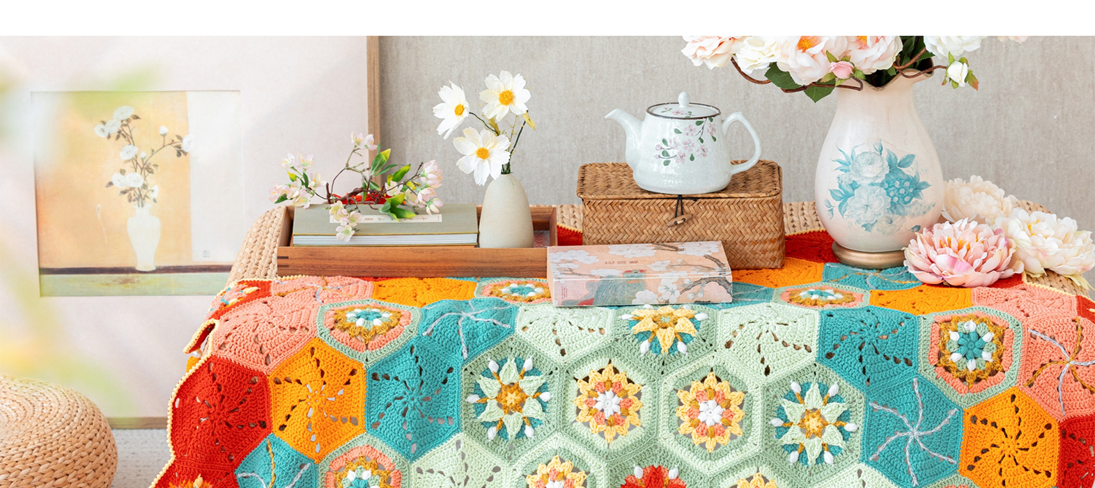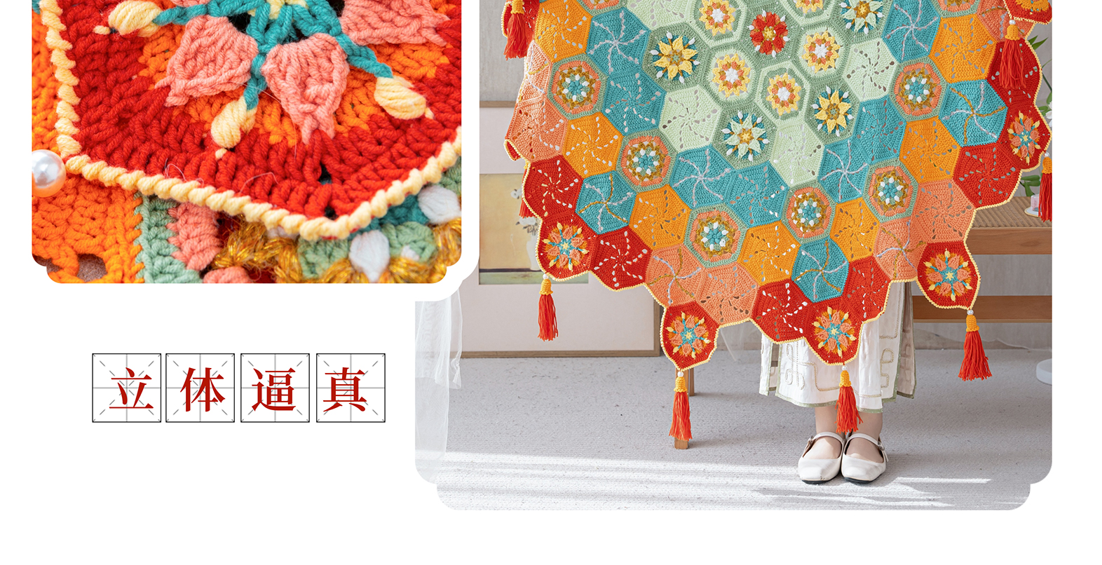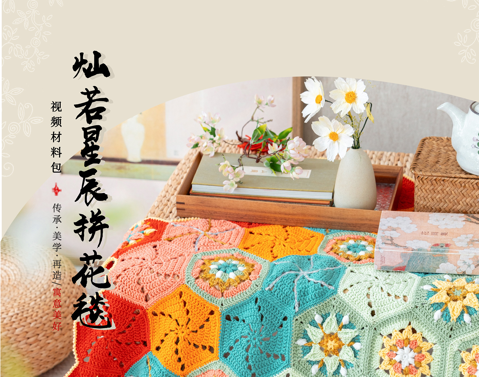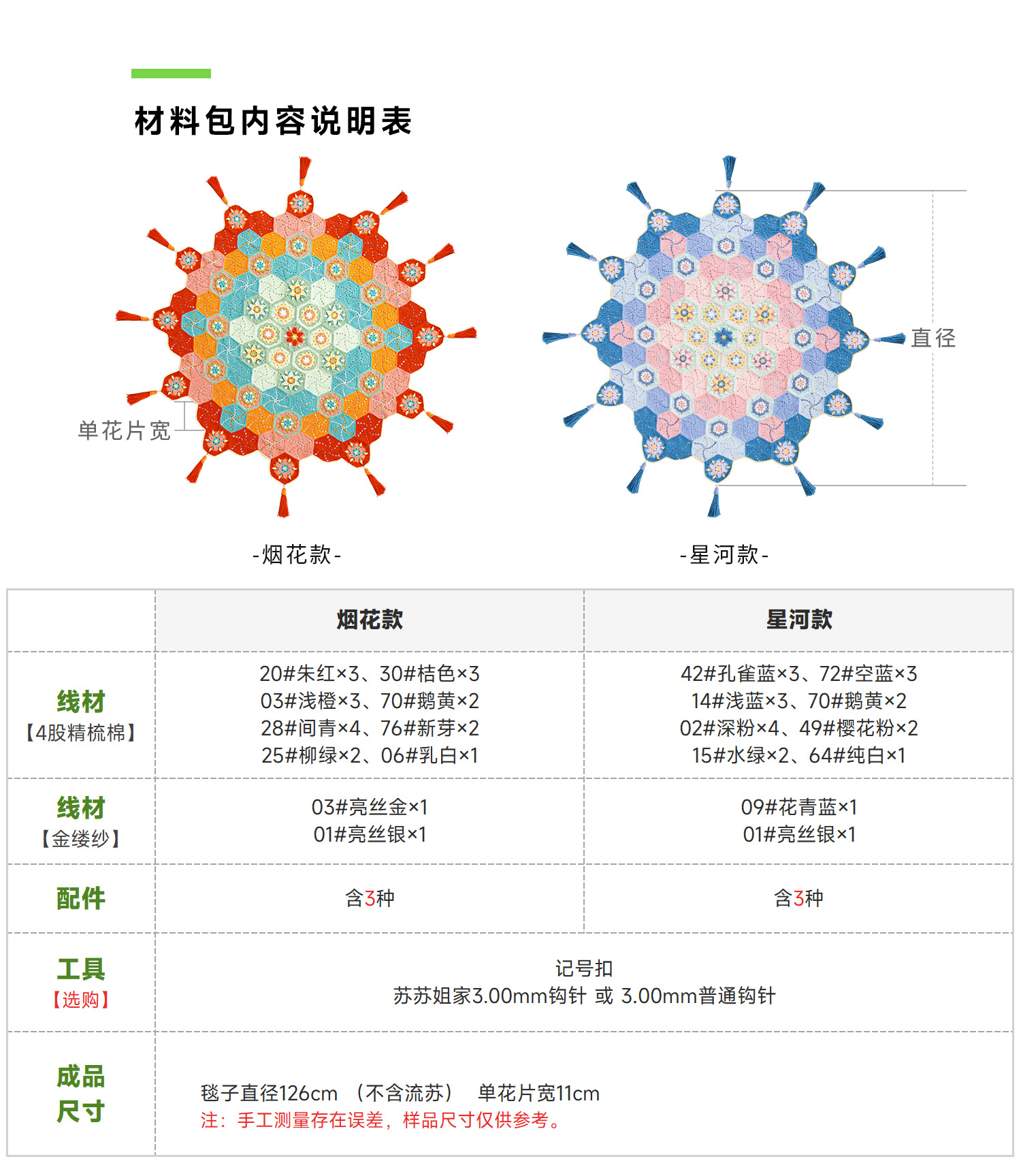 苏苏姐家灿若星辰拼花毯手工DIY编织钩针4股棉毛线自制材料包