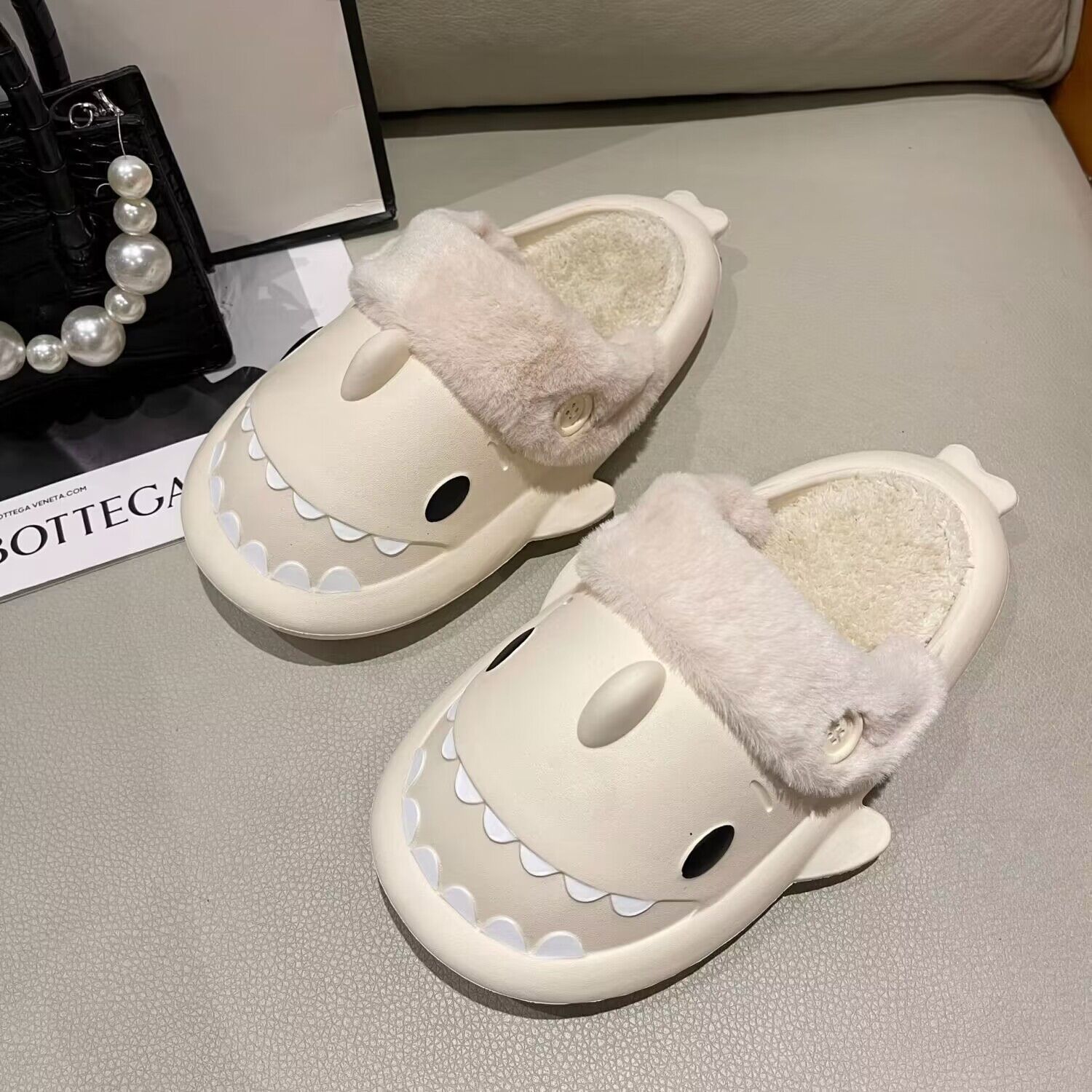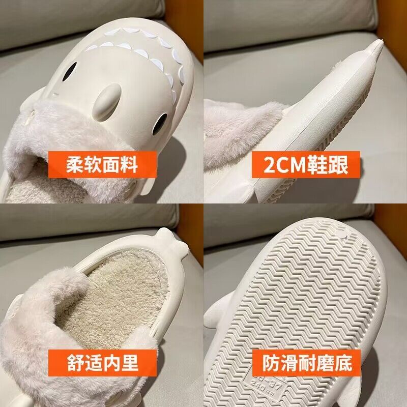 【暖出圈🔥可爱鲨鱼棉拖鞋】时尚鞋床设计,柔软亲肤「舒适不磨脚」呵护你的双足,精心设计防滑大底,增大摩擦力,行走更加舒适,情侣可拆洗内胆室内室外,保暖秋冬季加绒居家拖鞋L