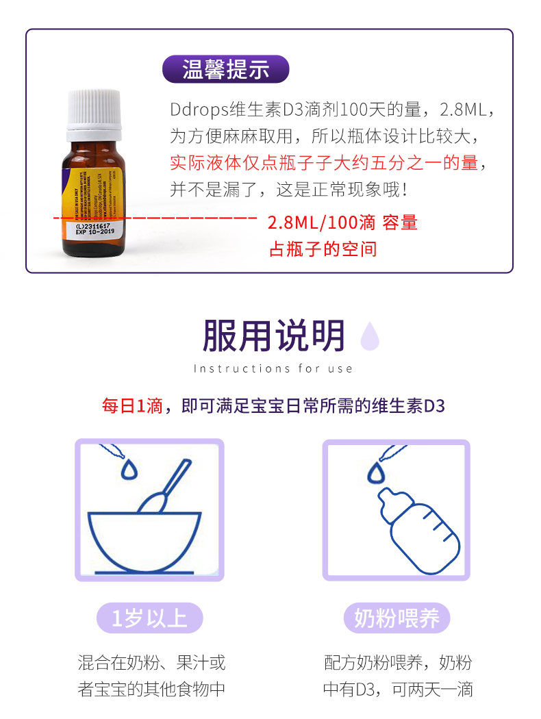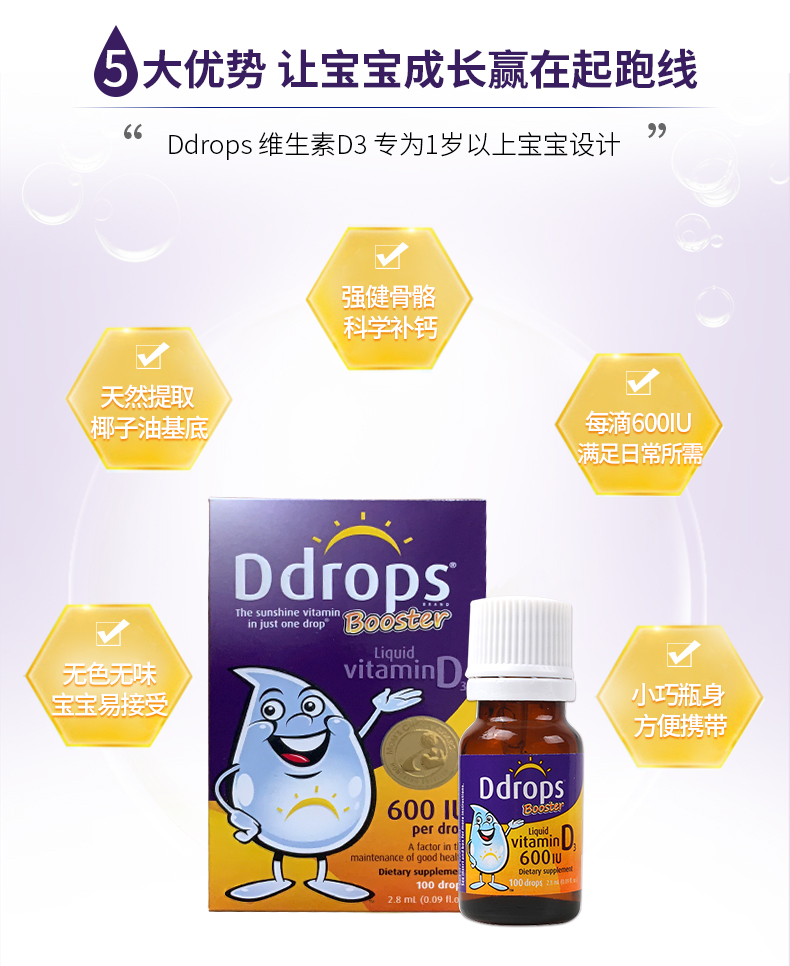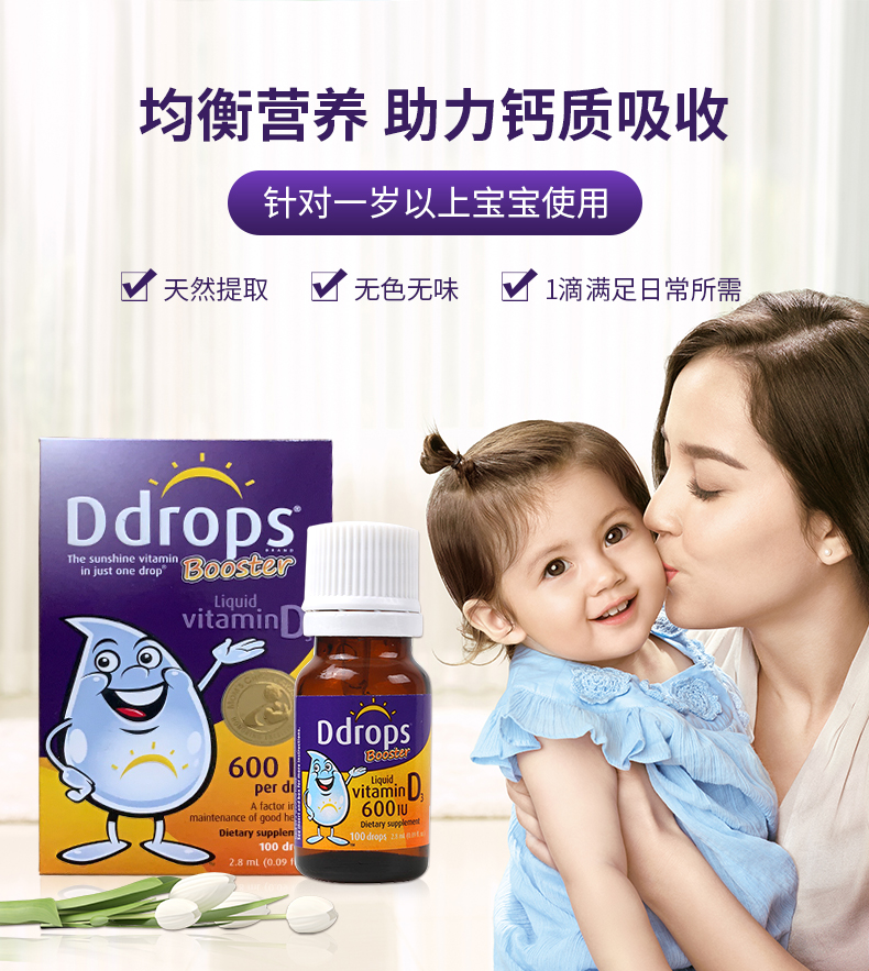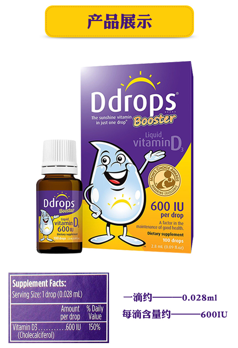 【天猫西选】Ddrops幼儿维生素D3滴剂 600IU 100滴 2.8ml