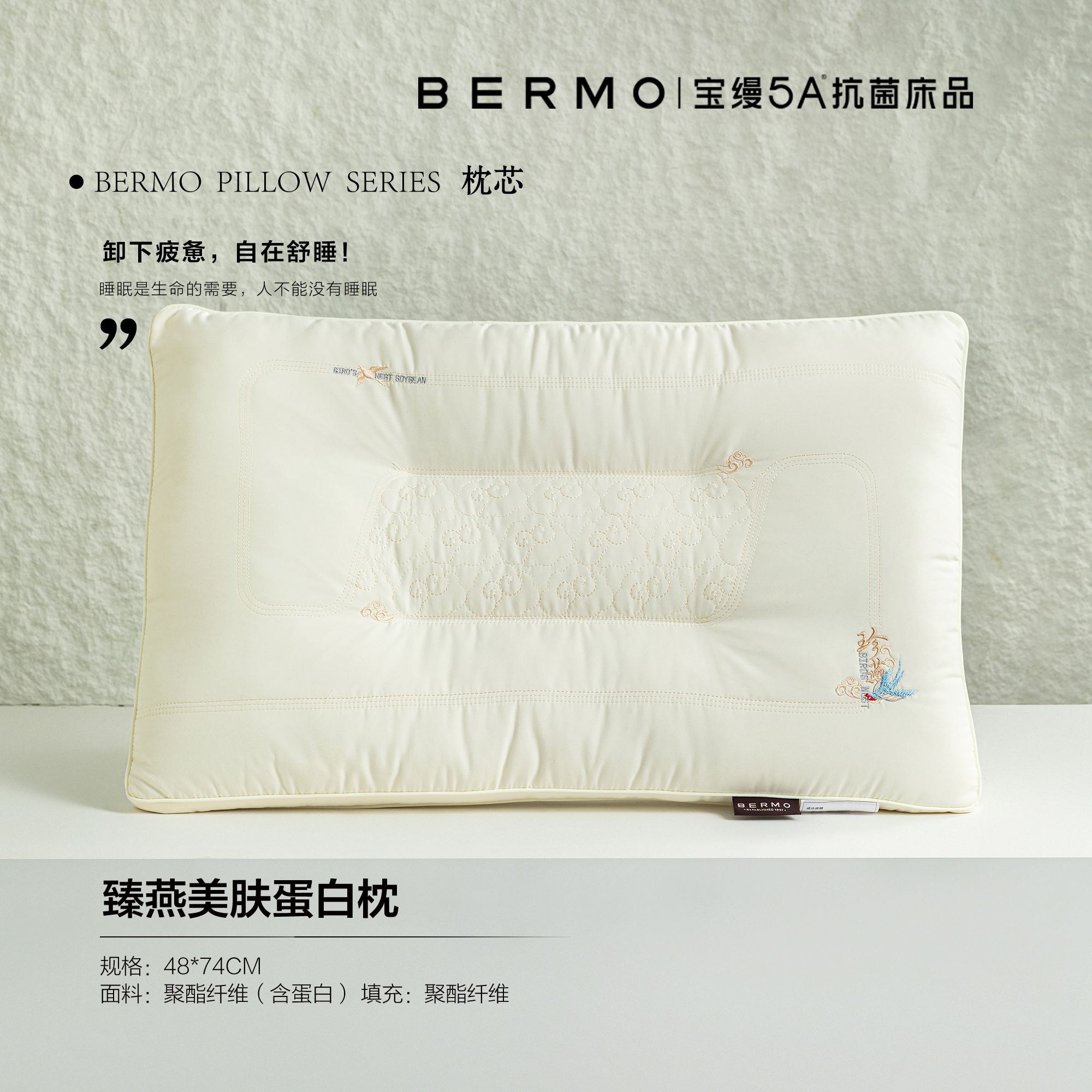 【云粉节】10楼宝缦 臻燕美肤蛋白枕 74*48cm 吊牌价180元 活动价59/只