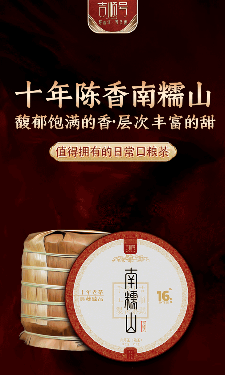 吉顺号南糯山普洱茶熟茶饼十年陈老熟茶357克