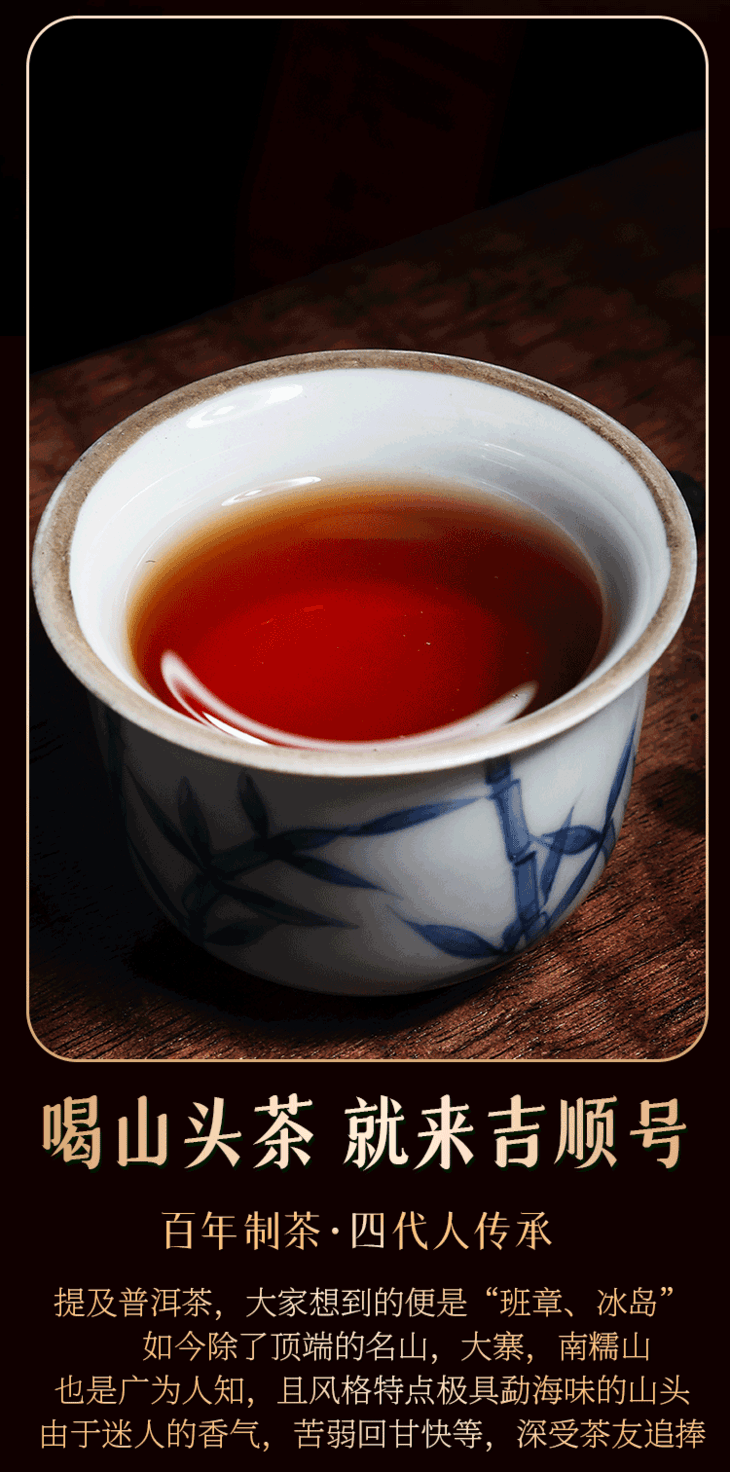 - 云南吉顺号茶业,专业云南普洱茶基地生产销售商。自有基地茶厂及运营仓储物流团队。