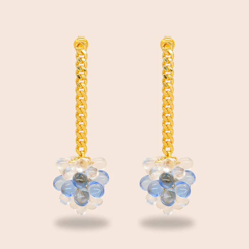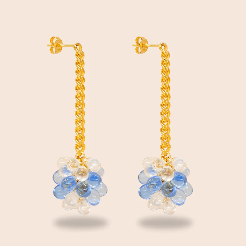 订购6周到|Annele-Puffy Pops-长款 蓝色 耳环[芬兰设计师]