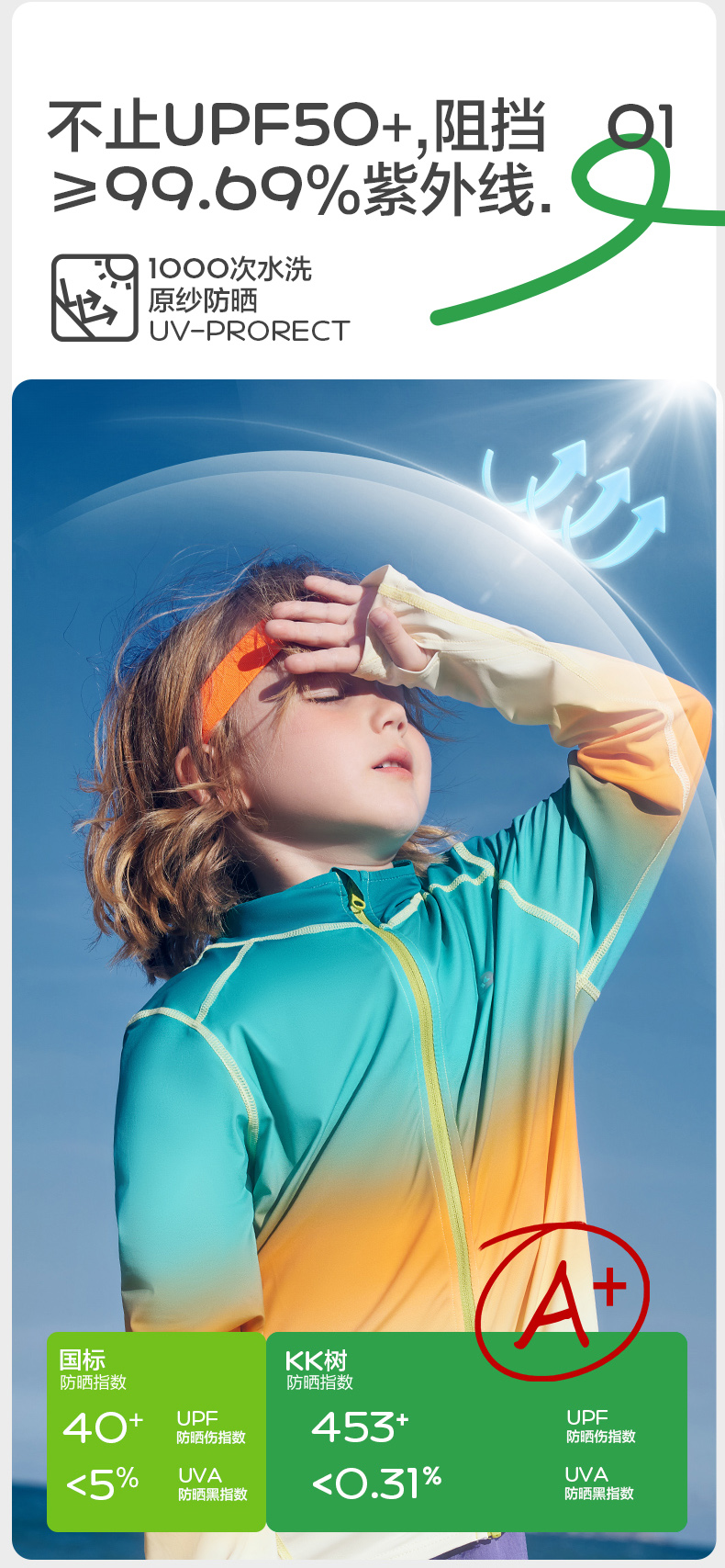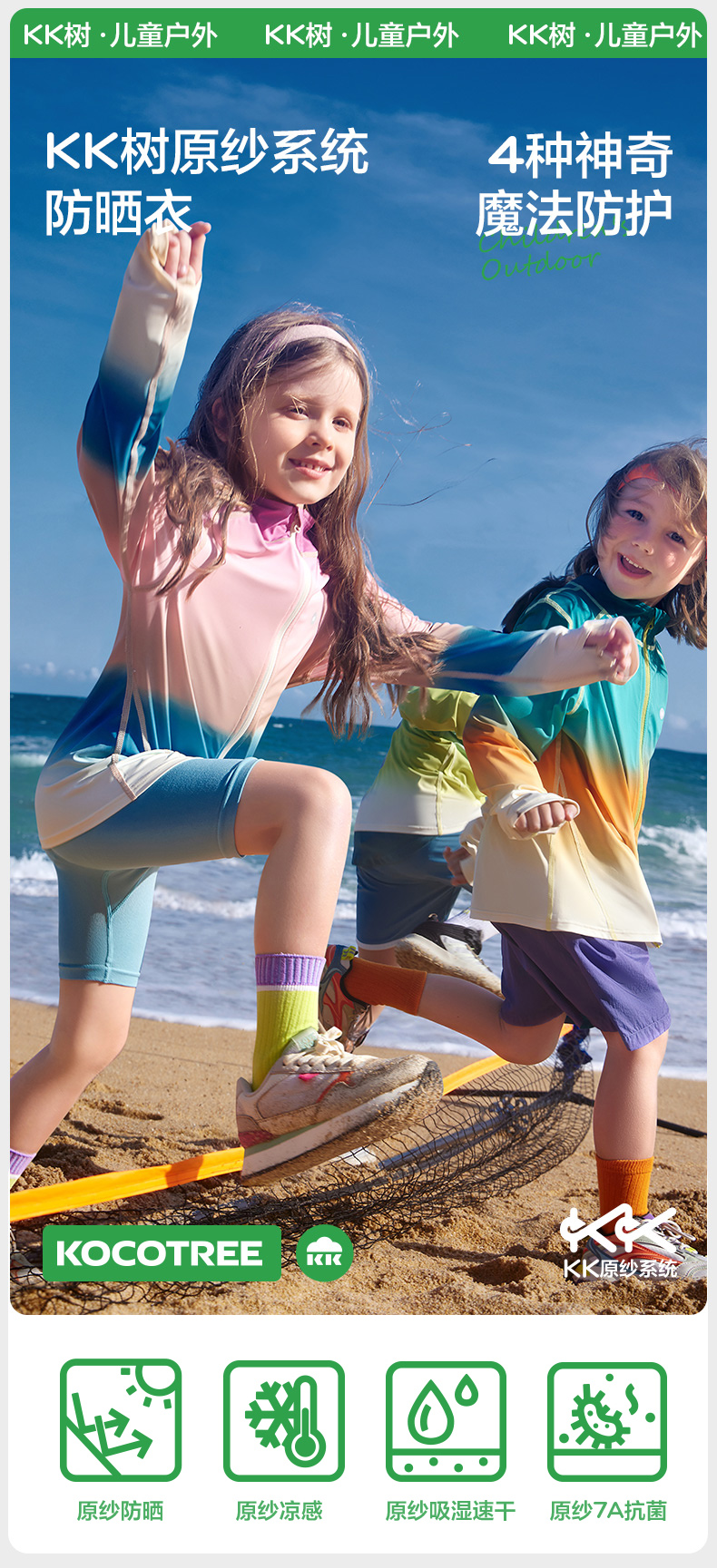 [屁侠推荐]KK树 儿童防晒衣 男童女孩原纱防紫外线 宝宝皮肤衣 运动防晒服外套