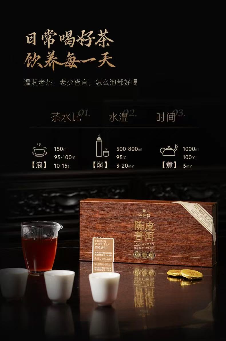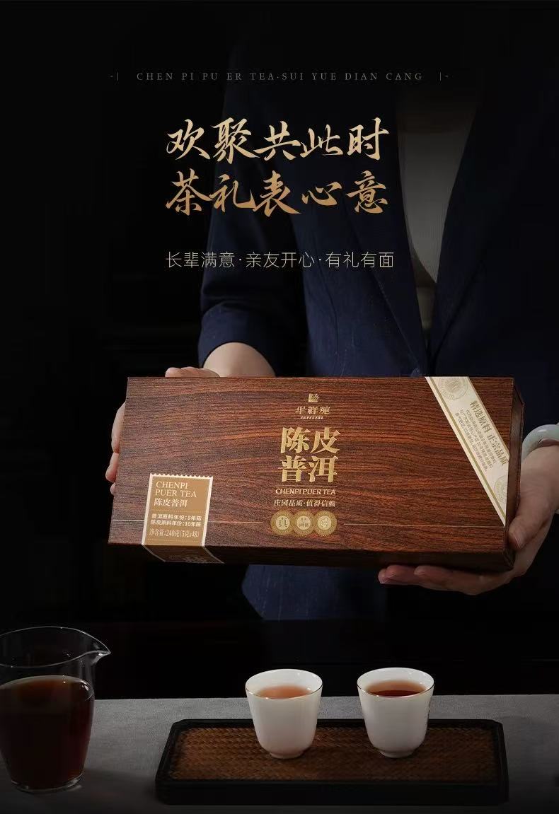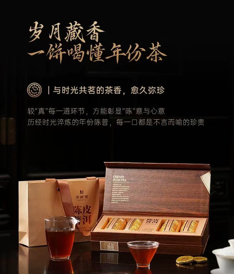 华祥苑茶叶陈皮普洱礼盒 8年熟普10年陈皮紧压送礼礼盒伴手礼