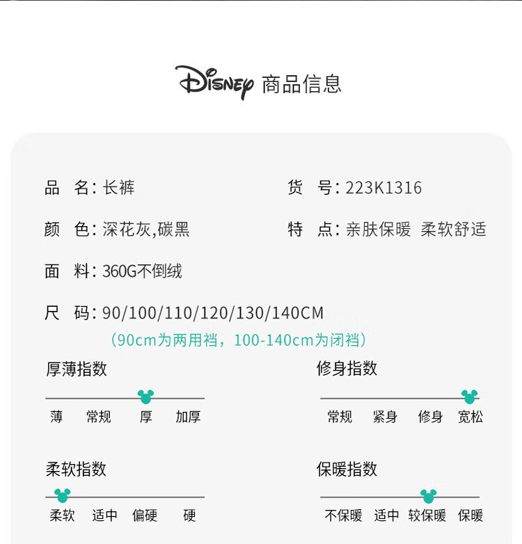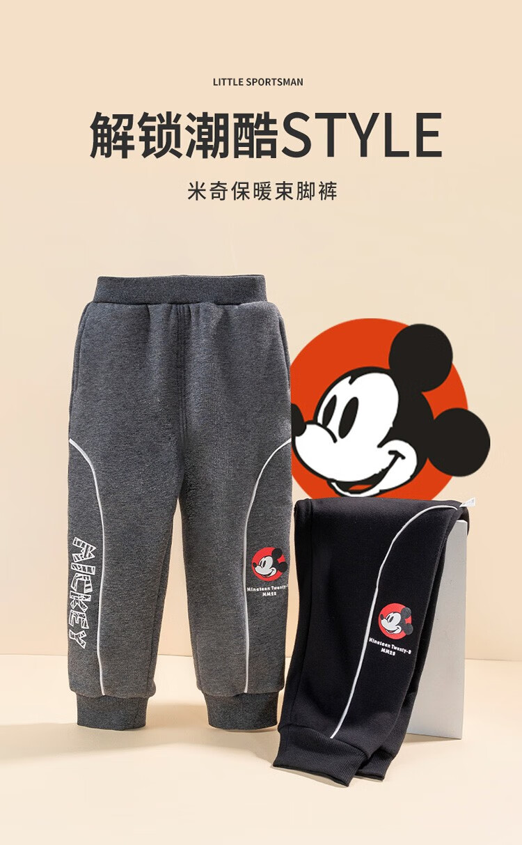 迪士尼童装儿童秋冬加绒保暖长裤男童束脚时尚休闲裤
