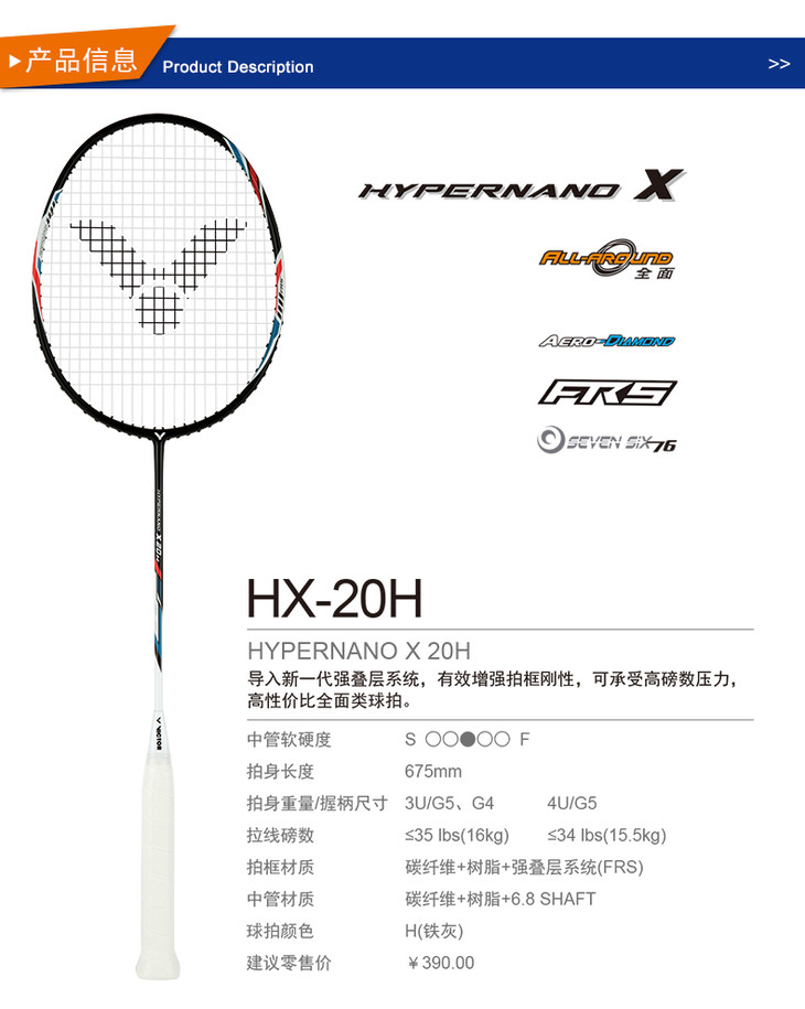 拍杆材质:碳纤维+树脂+6.8SHAFT