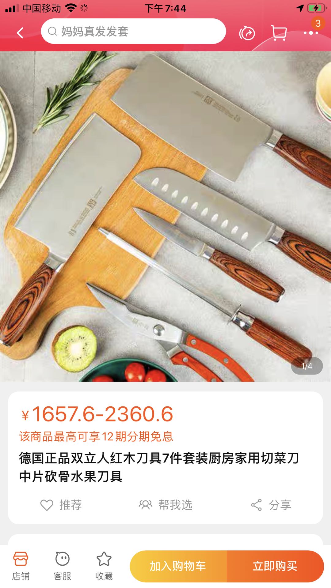 原价400+ 德国双立人(ZWILLING)红桃木七件套刀具 厨房高端刀具套装