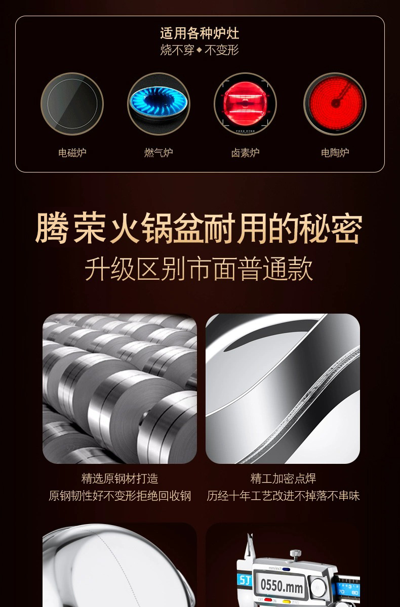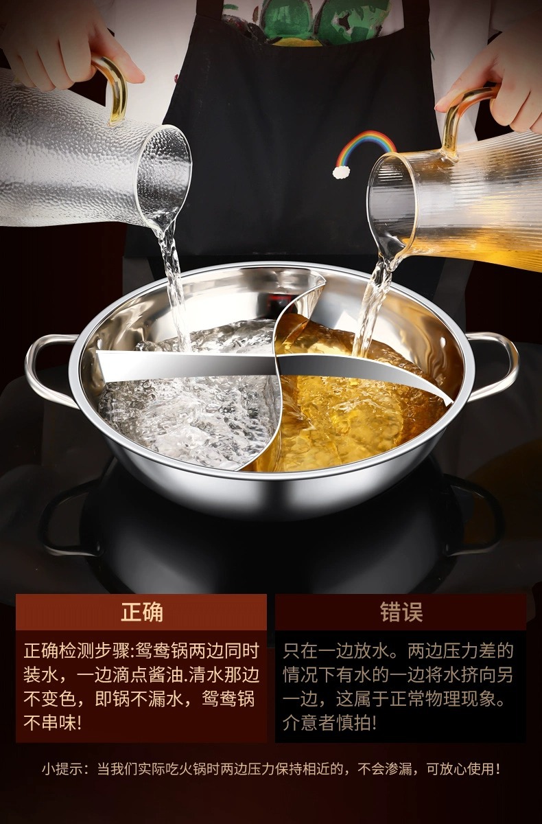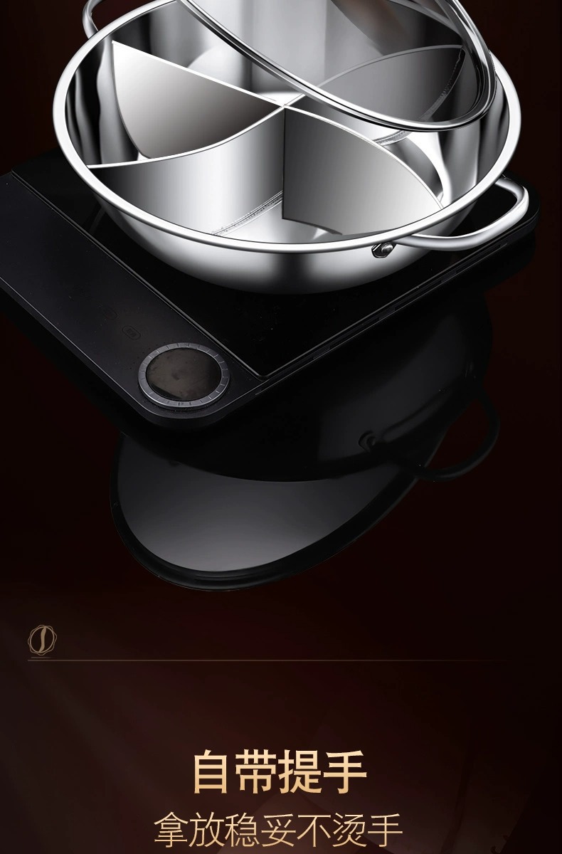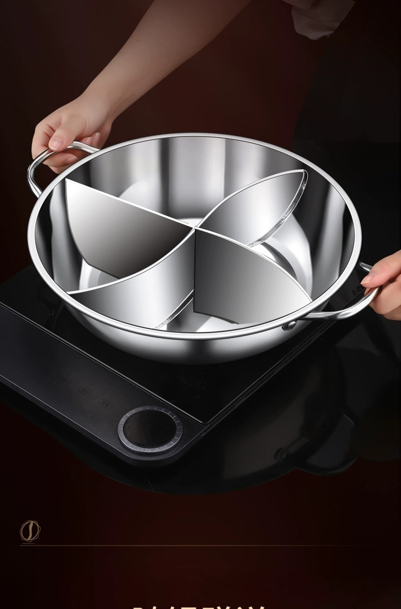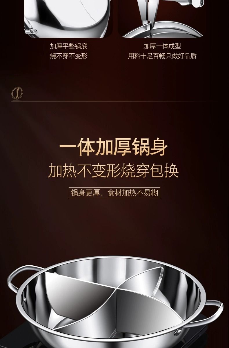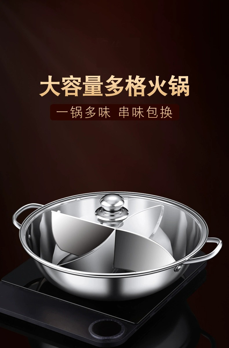 不锈钢四味四宫格鸳鸯锅三格三味火锅家用锅
