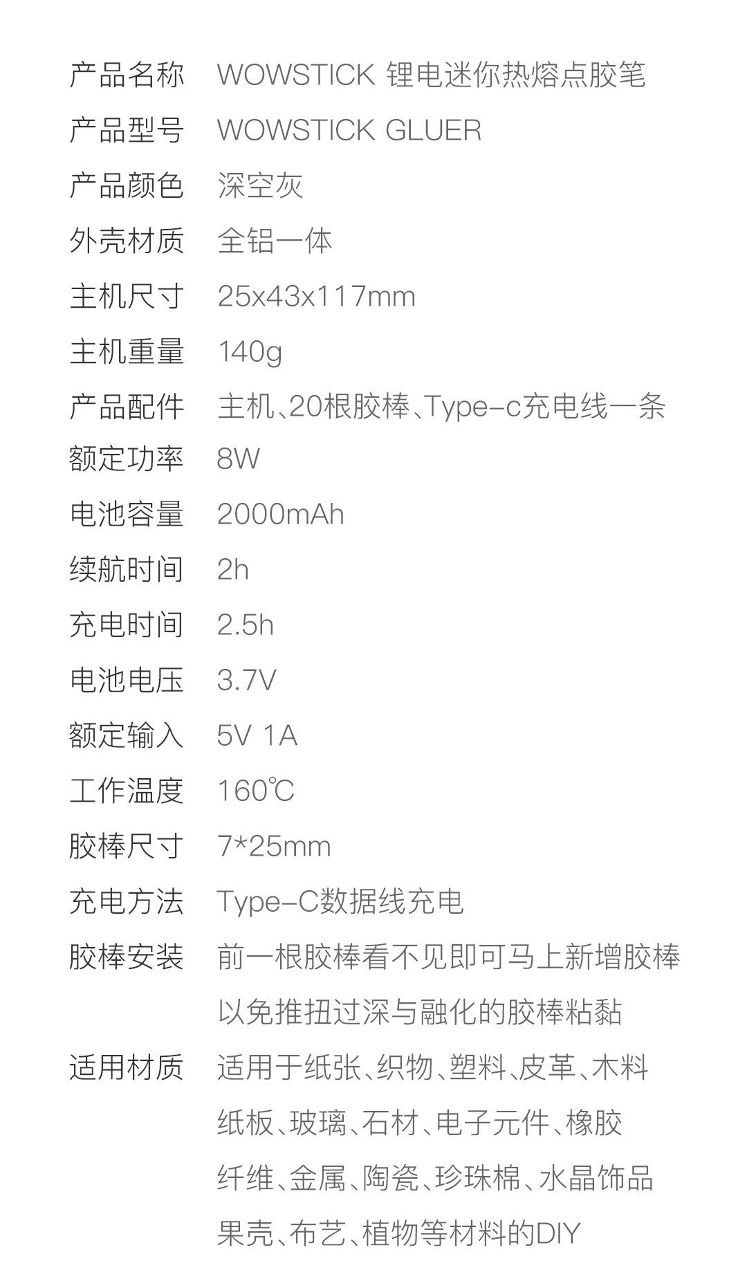 注:熔胶棒颜色随机,不接受指定