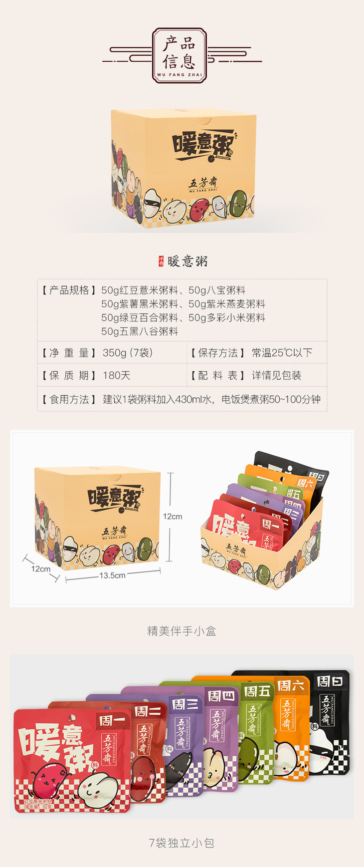 五芳斋 暖意粥周装7袋 五谷杂粮散装组合小包装八宝粥原料米营养早餐生粥粗粮