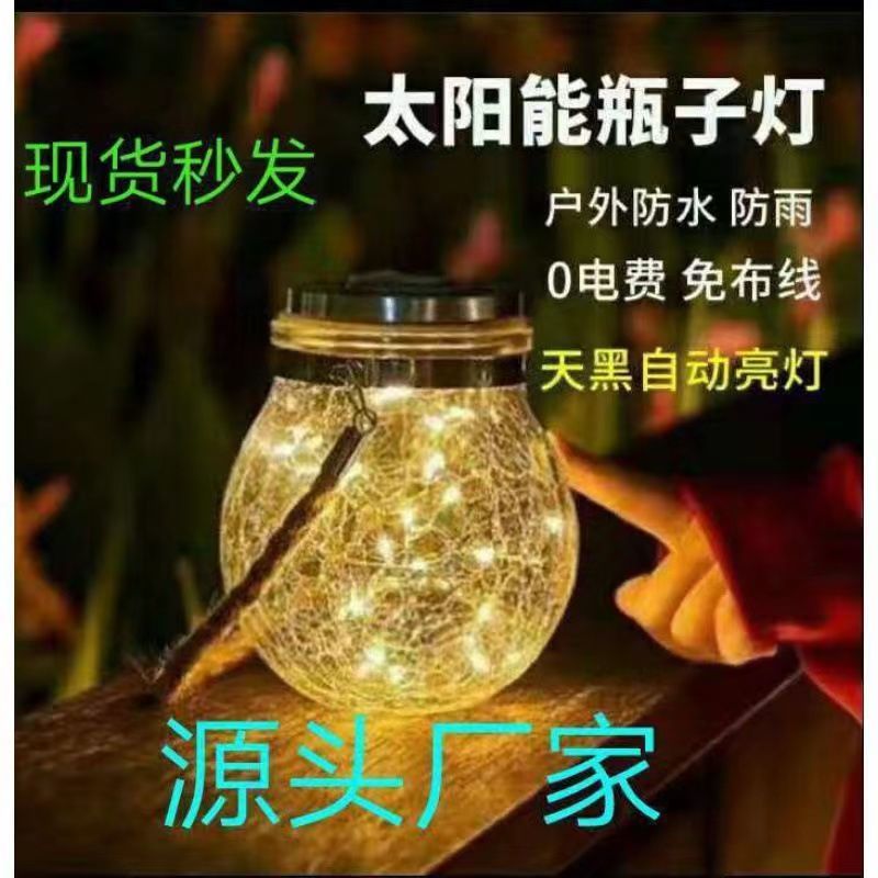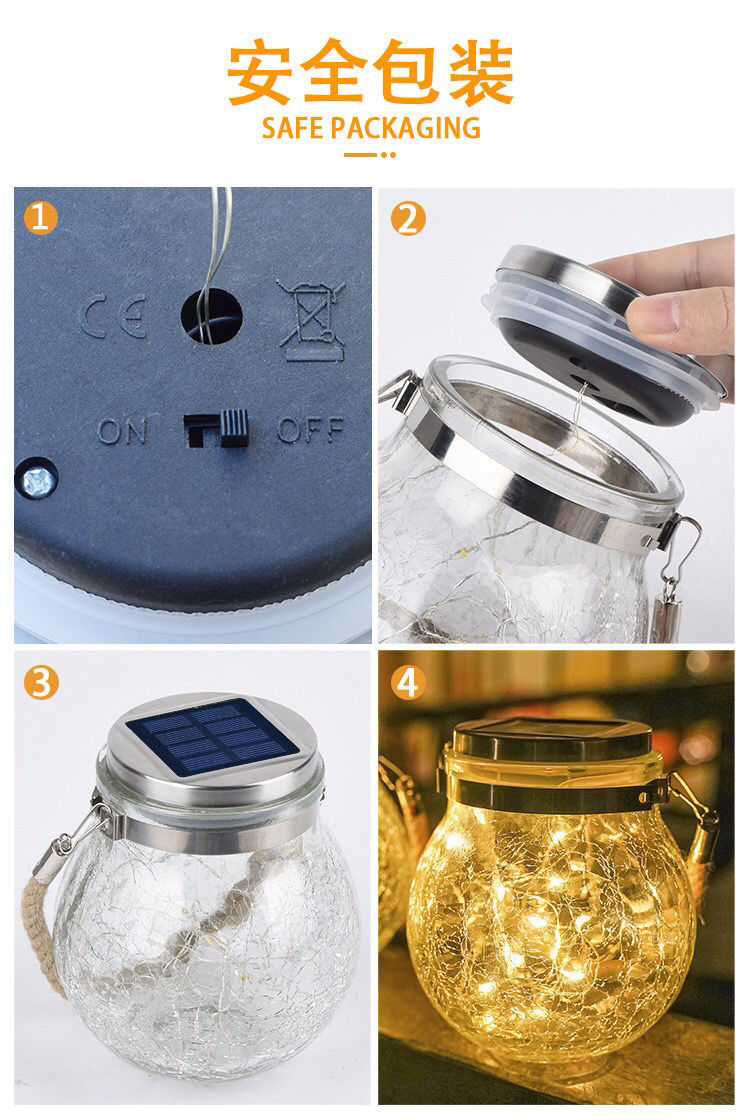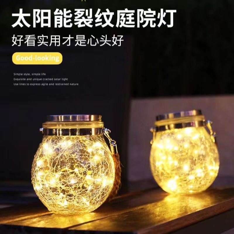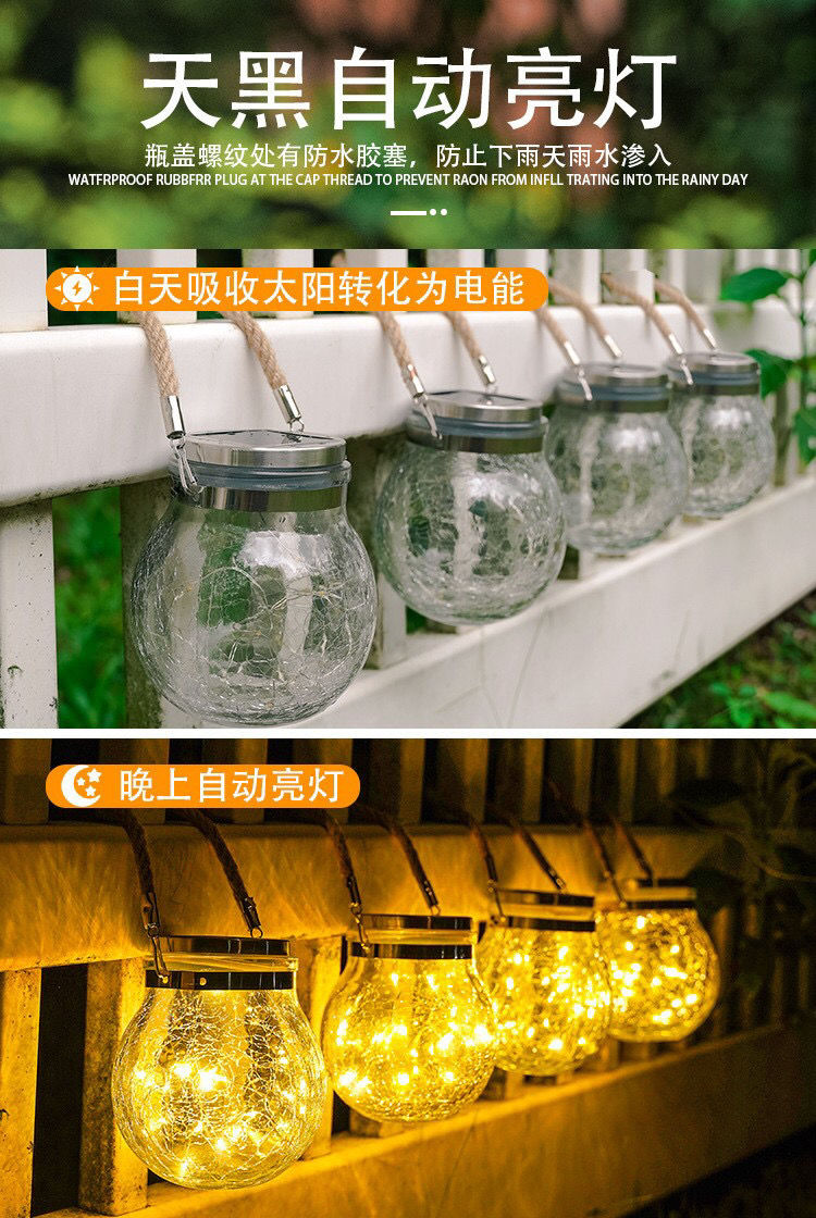 太阳能裂纹灯星空许愿挂树灯庭院装饰罐子灯创意满天星户外阳台灯