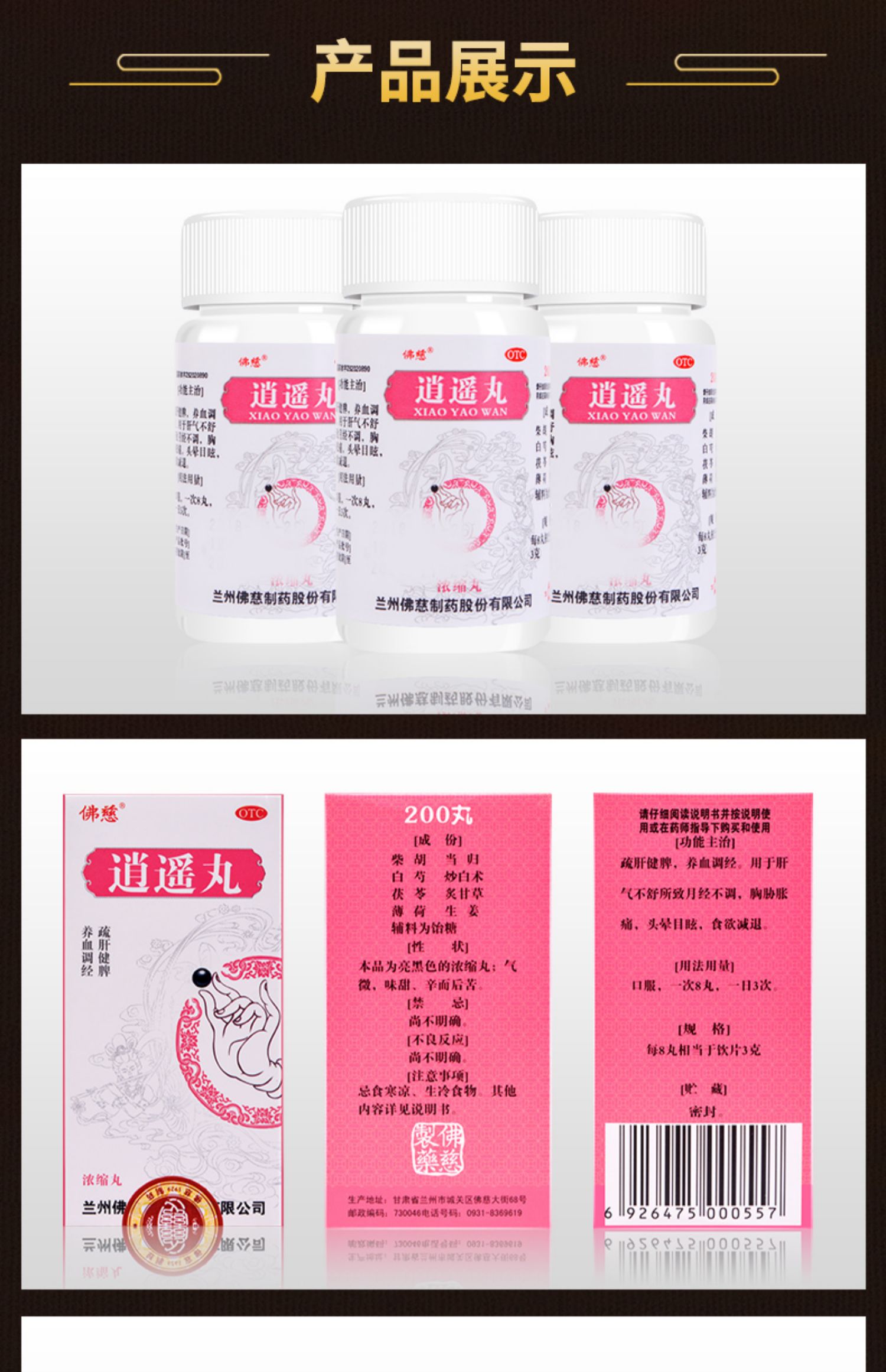 佛慈 逍遥丸200丸浓缩丸养血调经疏肝健脾食欲减退头昏目眩中药
