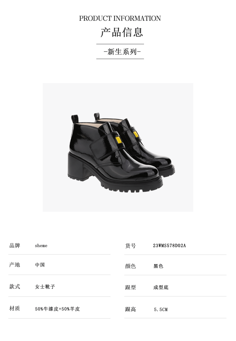 sheme新生系列进口牛漆皮面料简约时尚易搭配女士短靴可定制