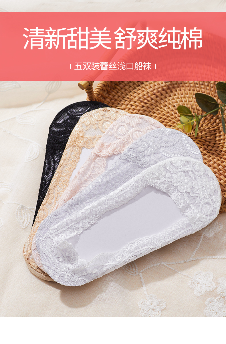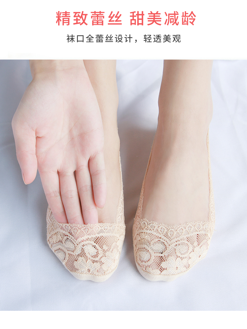 雅黛丽袜子女船袜隐形防滑不掉跟夏季薄款蕾丝短袜女袜子潮网红款