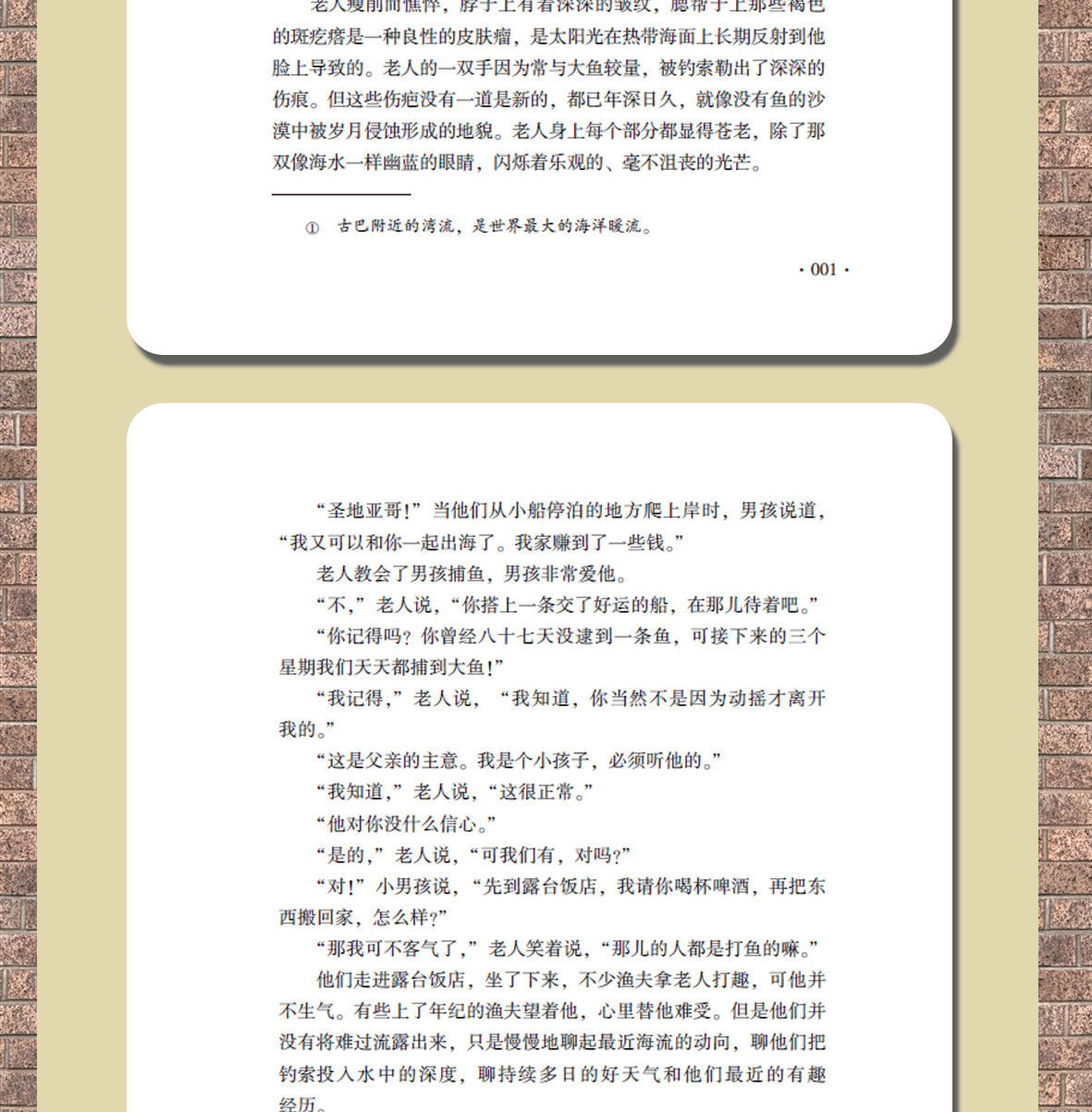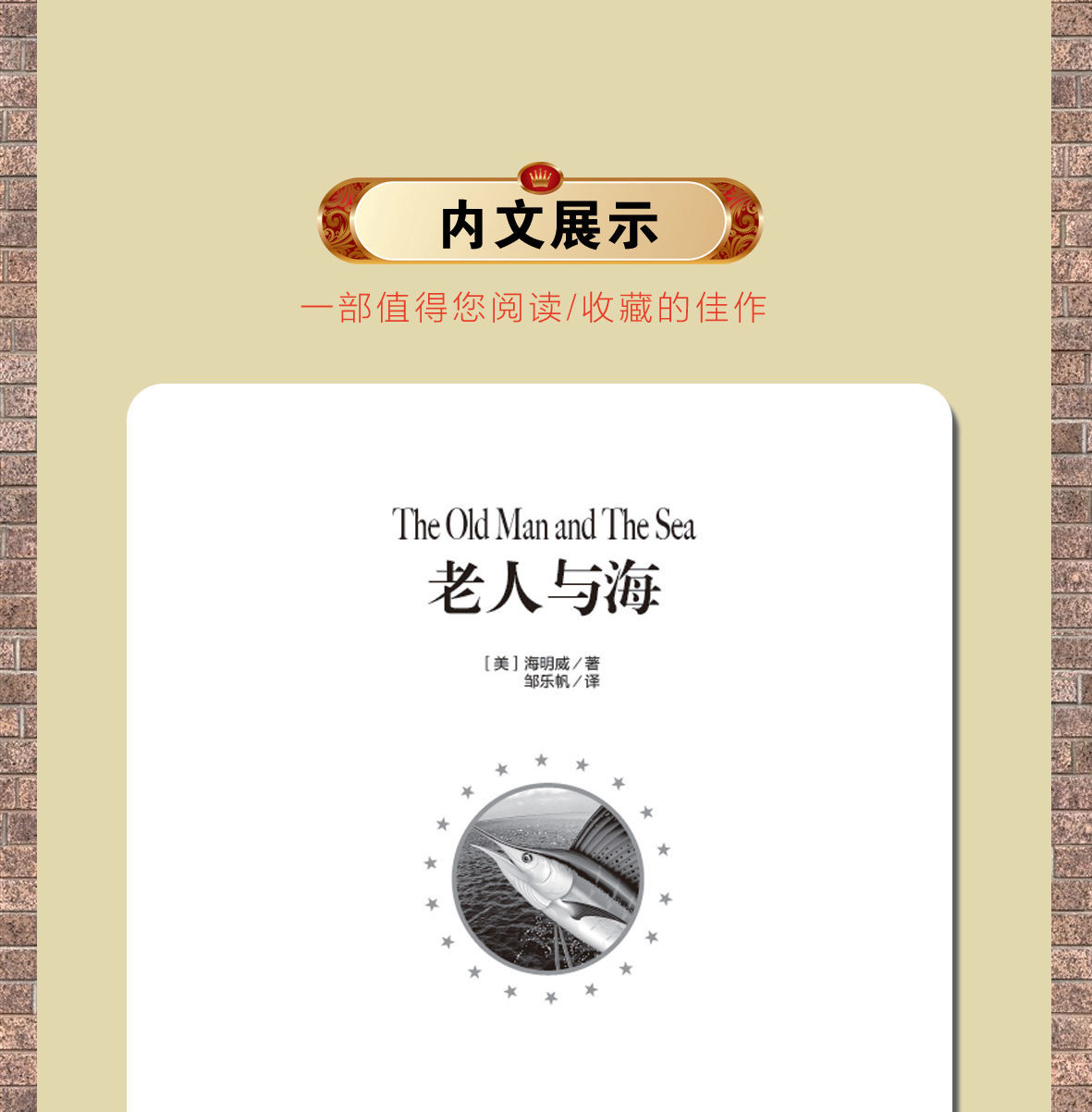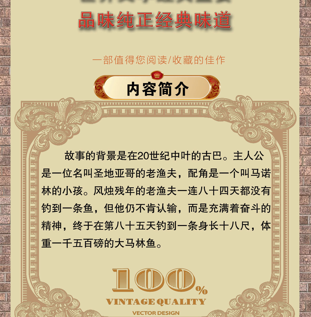 老人与海正版海明威原著中文全译本完整无删减经典世界文学名著小说乞力马扎罗的雪五六年级小学生初中生高中生必读课外书阅读书籍