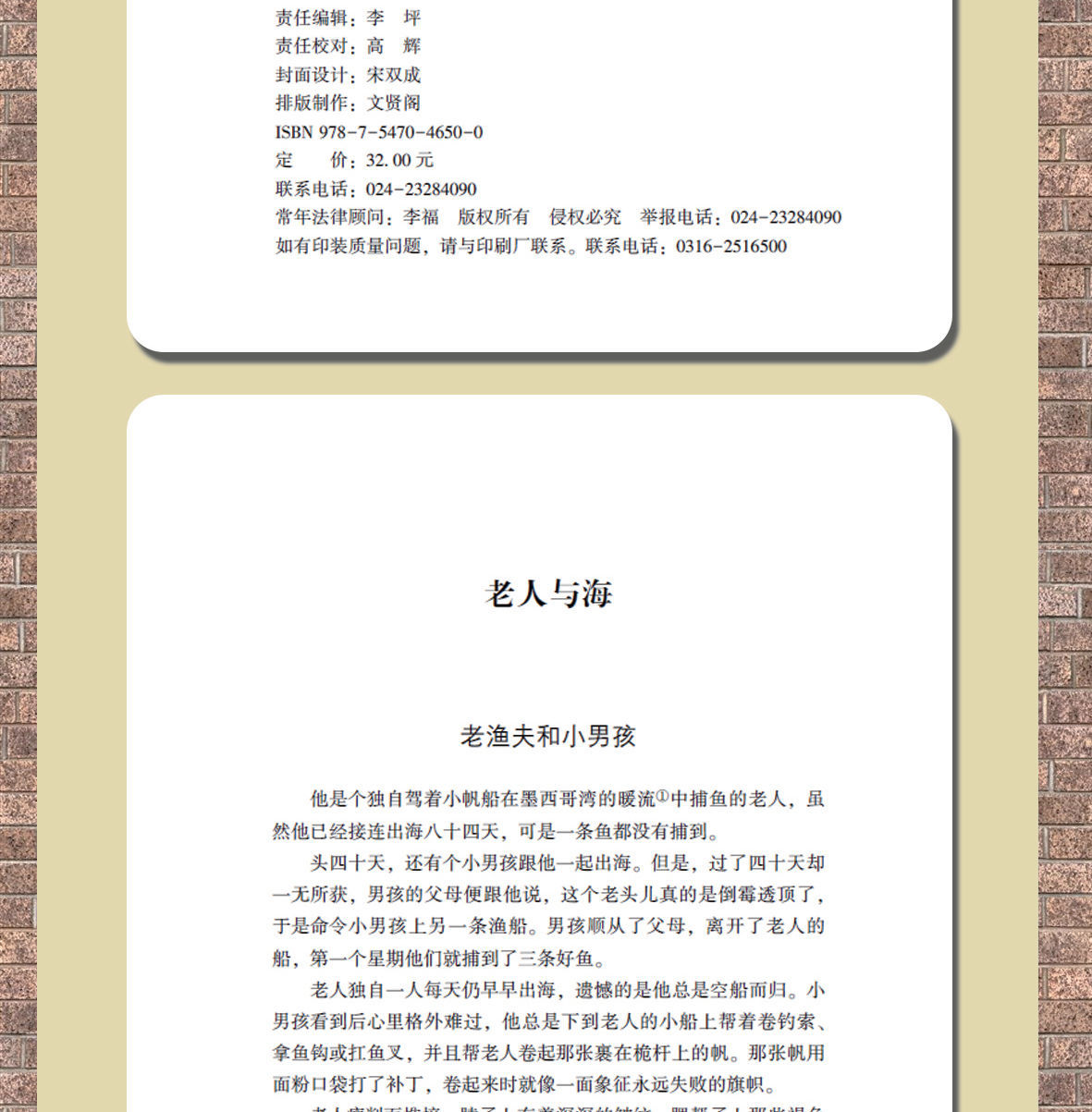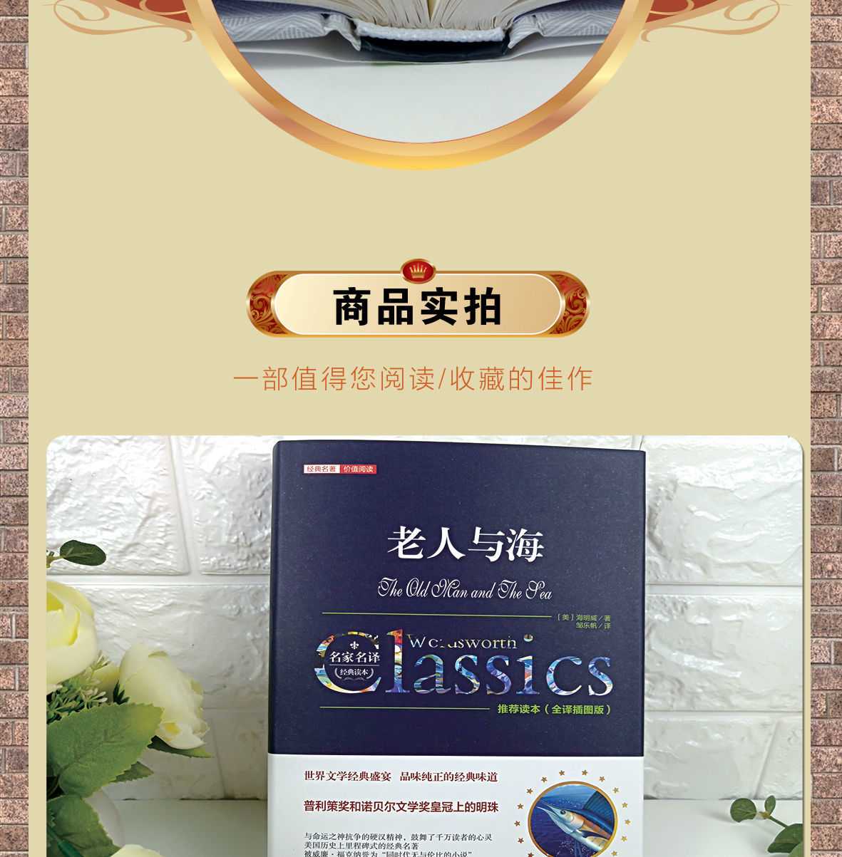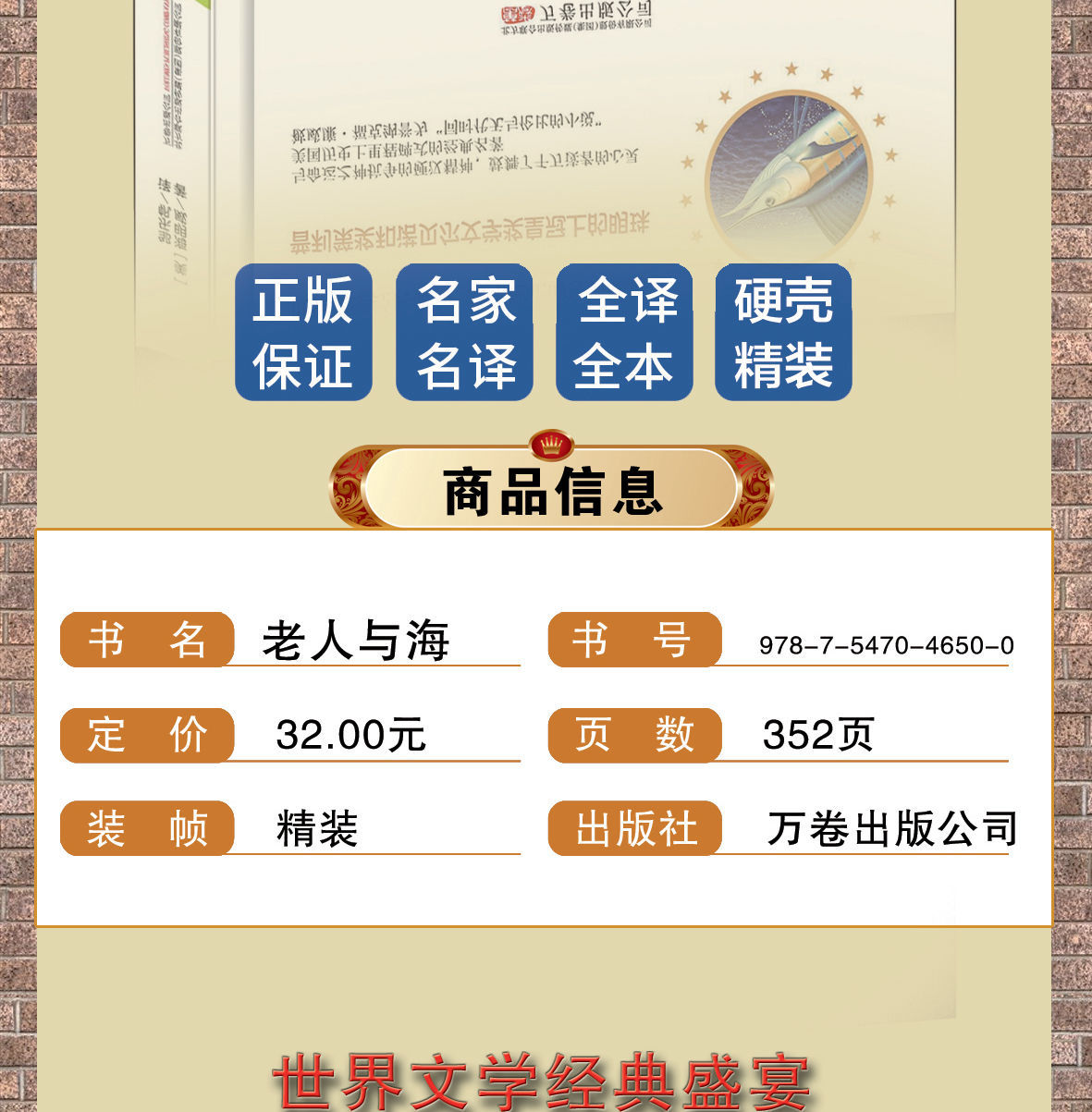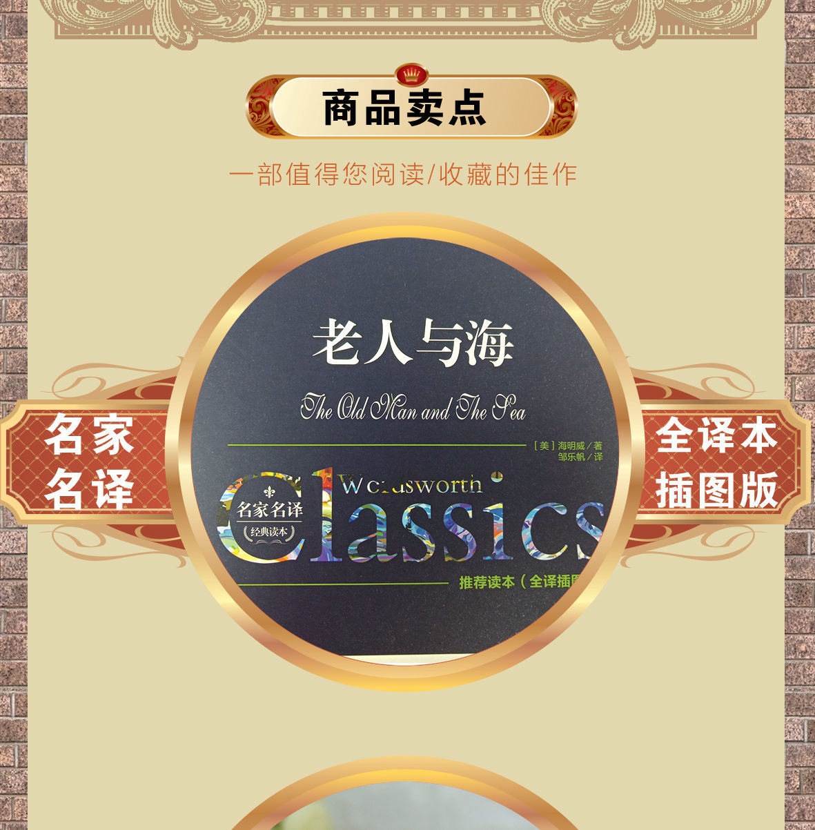 老人与海正版海明威原著中文全译本完整无删减经典世界文学名著小说乞力马扎罗的雪五六年级小学生初中生高中生必读课外书阅读书籍