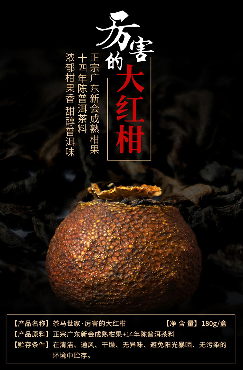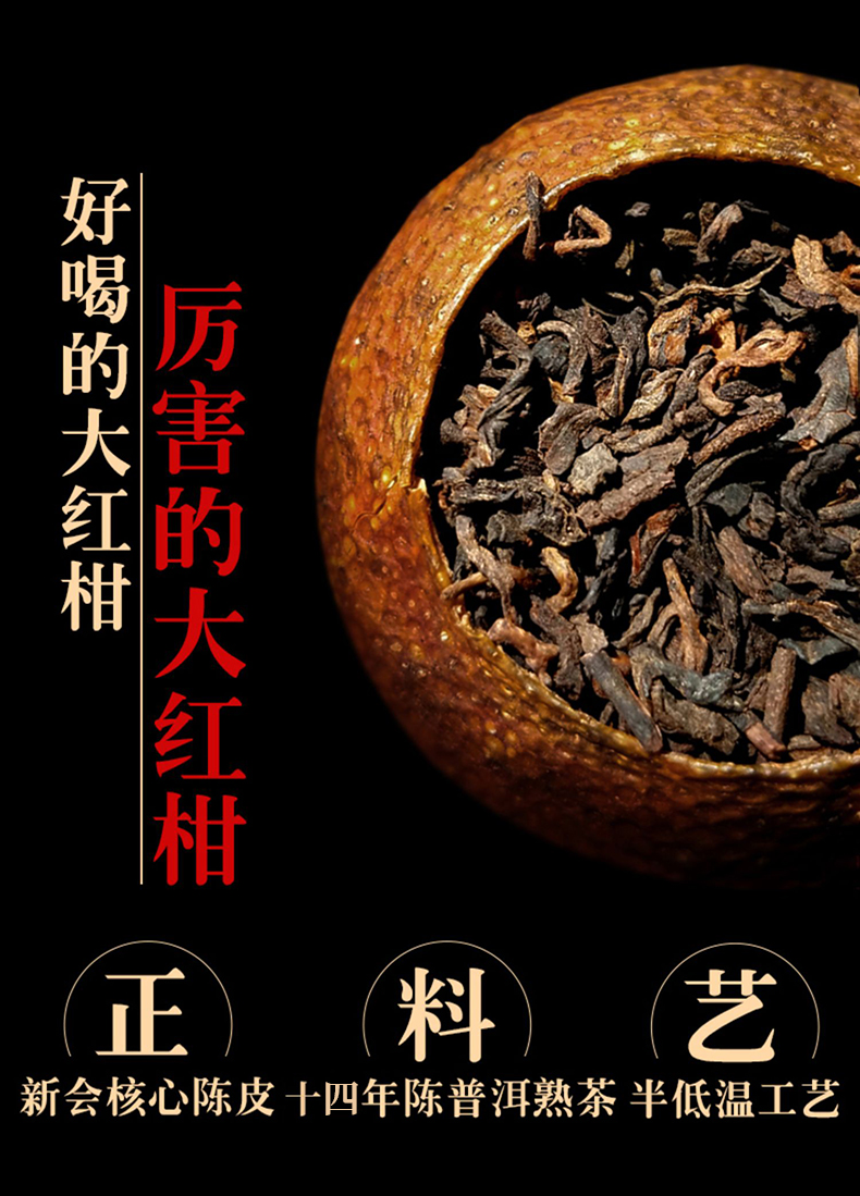 茶马世家 厉害の大红柑 新会天马陈皮普洱茶柑普茶普洱茶熟散茶叶