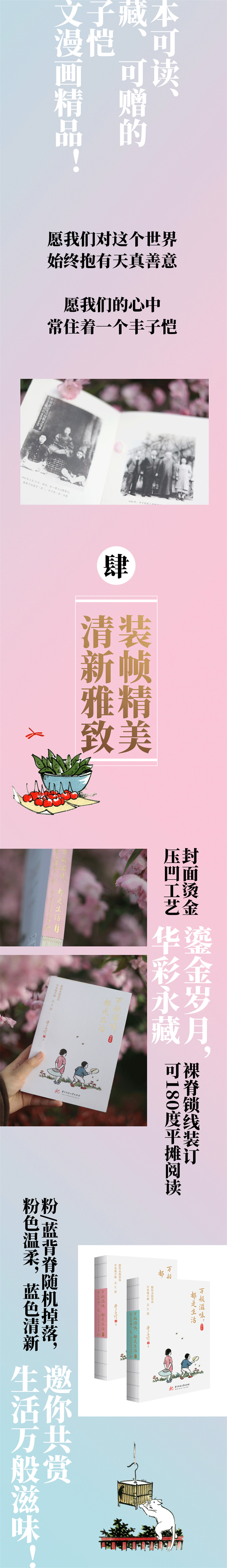 ★ 全新升级裸脊锁线装订!粉/蓝背脊随机掉落,粉色温柔,蓝色清新,邀你共赏生活万般滋味!