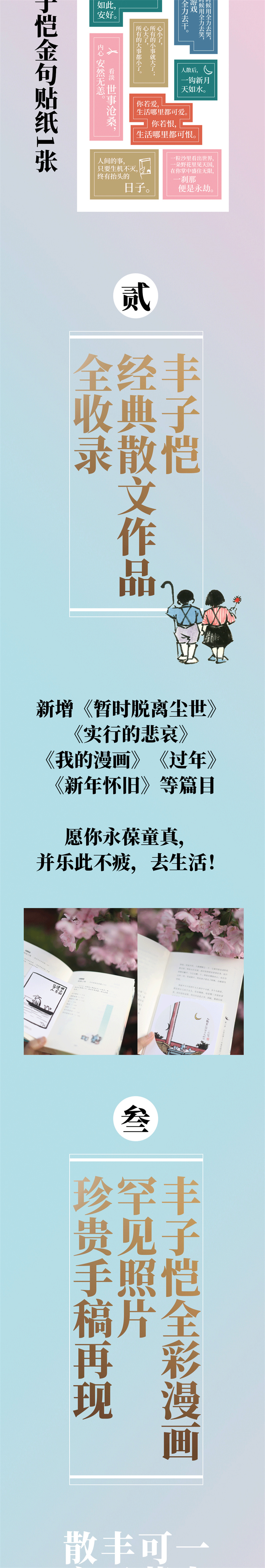 ★ 超多赠品:“世上如侬有几人”藏书票1枚,“新月”“樱桃”装饰画2幅,丰子恺金句贴纸1张!