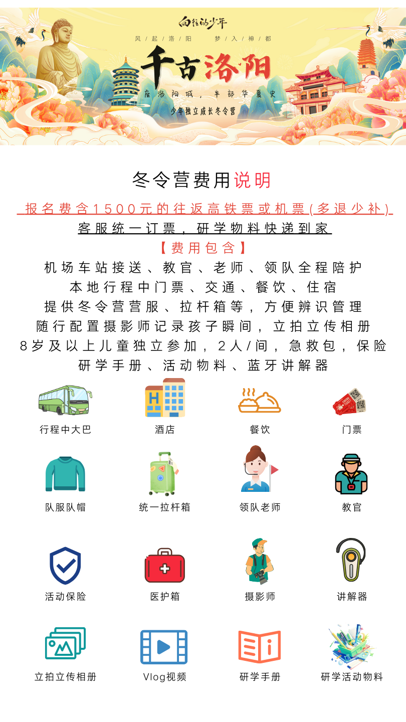 向往的少年《千古洛阳》 2025寒假 少年独立成长深度研学冬令营 1/18-1/24 六天五晚 8岁+儿童 官方领队陪护,寒假一起读行华夏史..