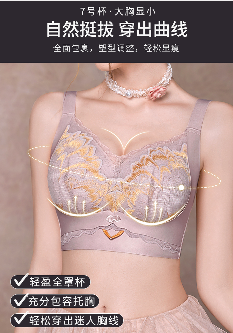 【298选3】D4-💟【B-E杯】【大胸显小超薄杯】【专利7号杯型】【大胸显小润微内衣女专用显瘦无钢圈蕾丝上托防下垂防外扩文胸 花栀清梦/郁香清紫/香红蜜雪