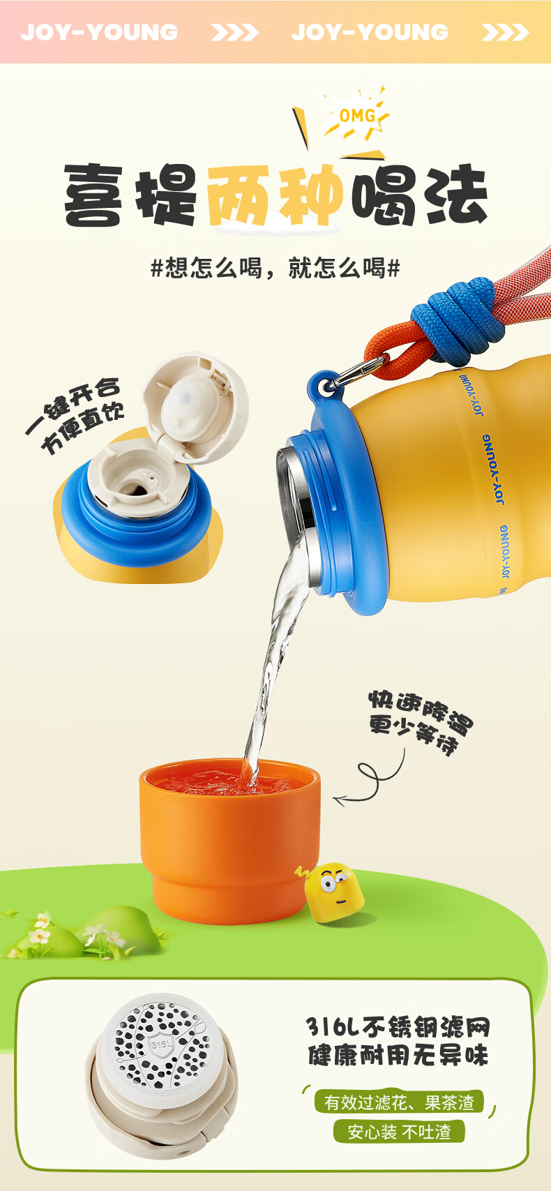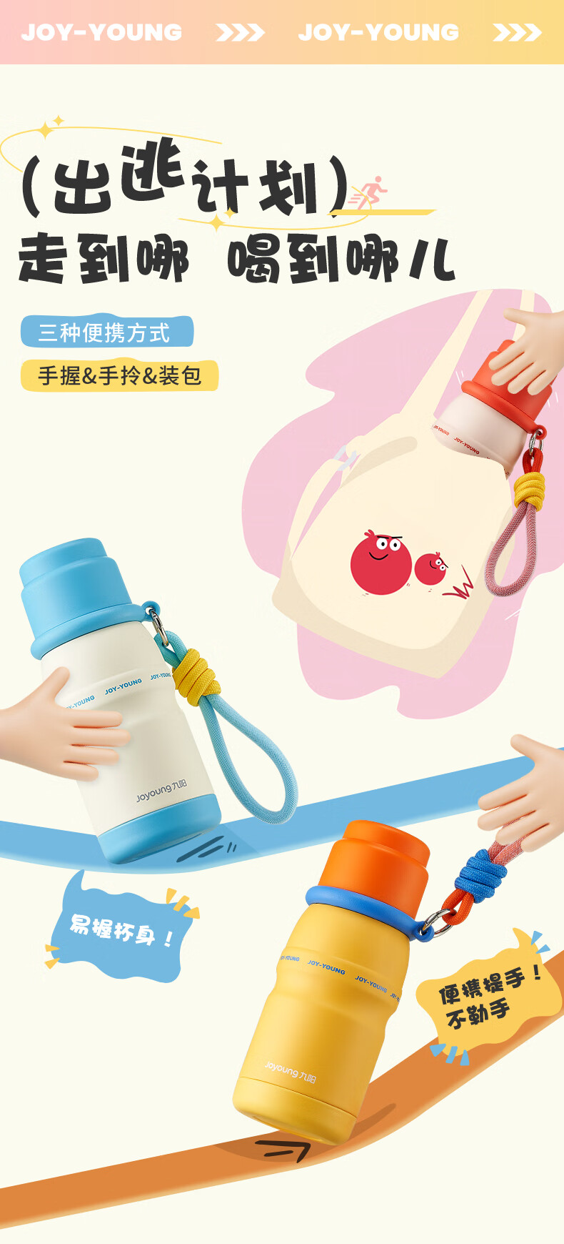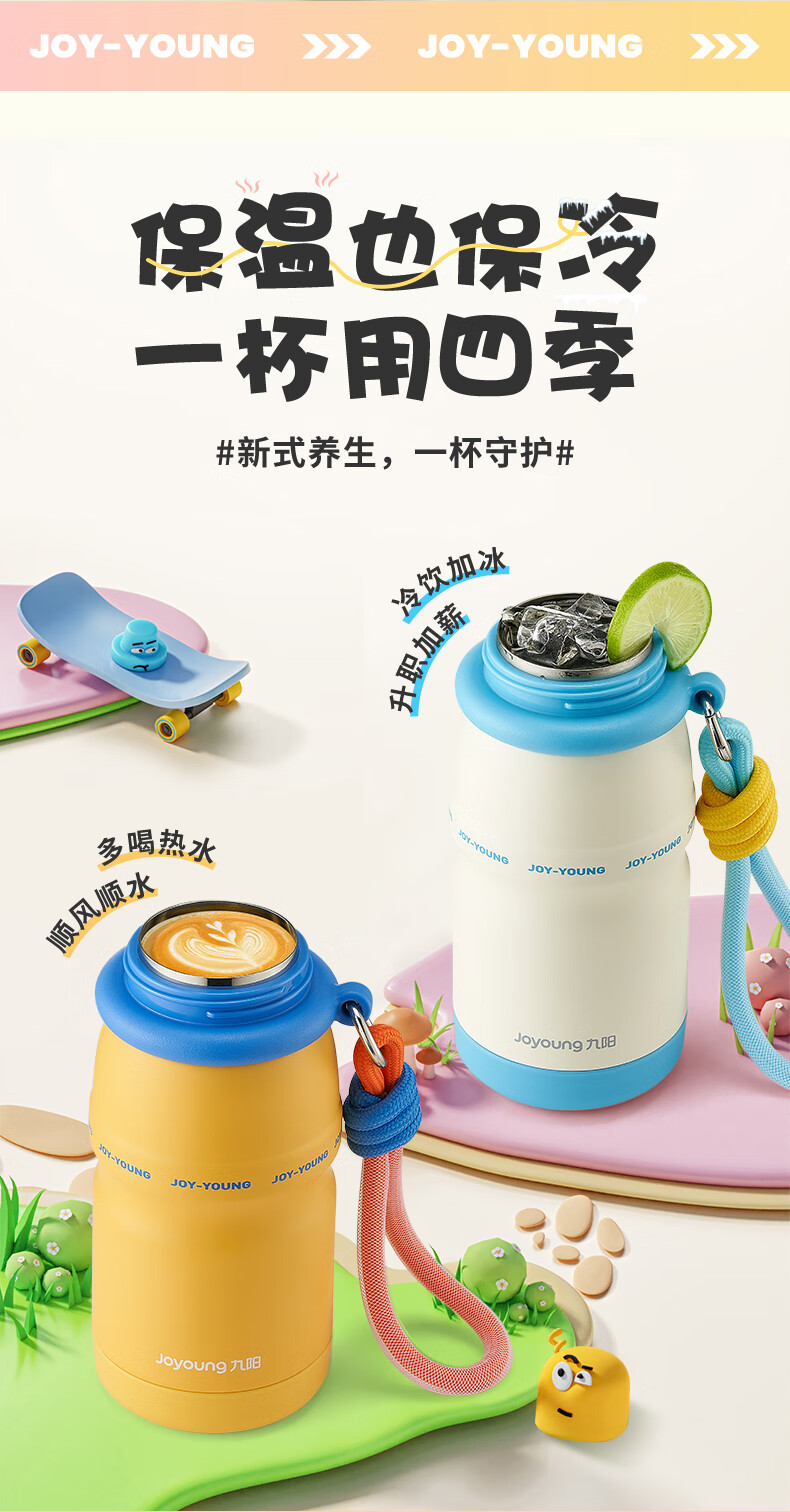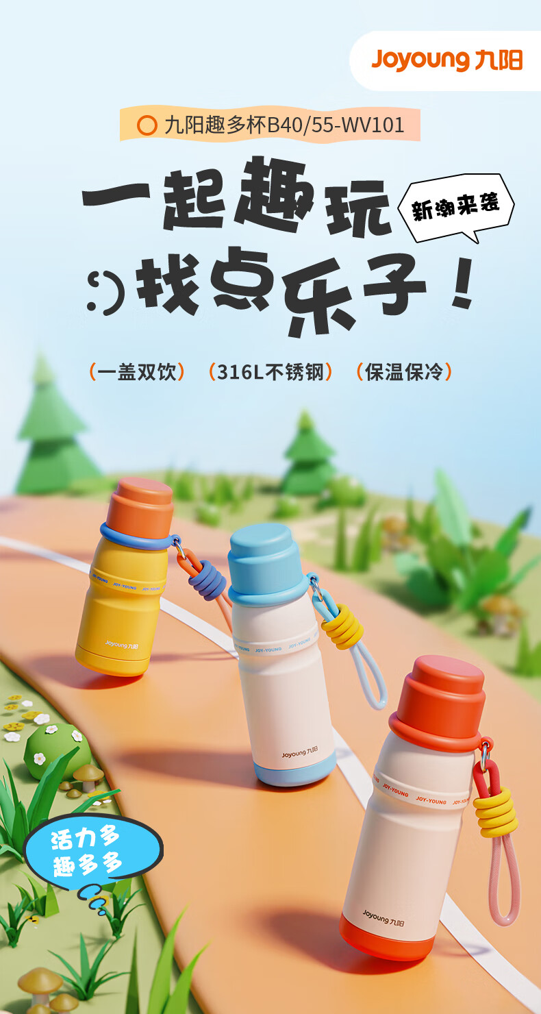 九阳找乐子保温杯316L不锈钢水杯户外男女便携双饮长效保温保冷杯