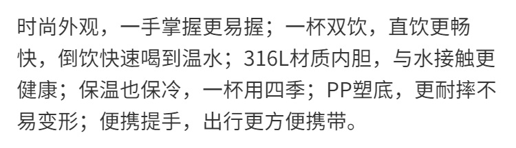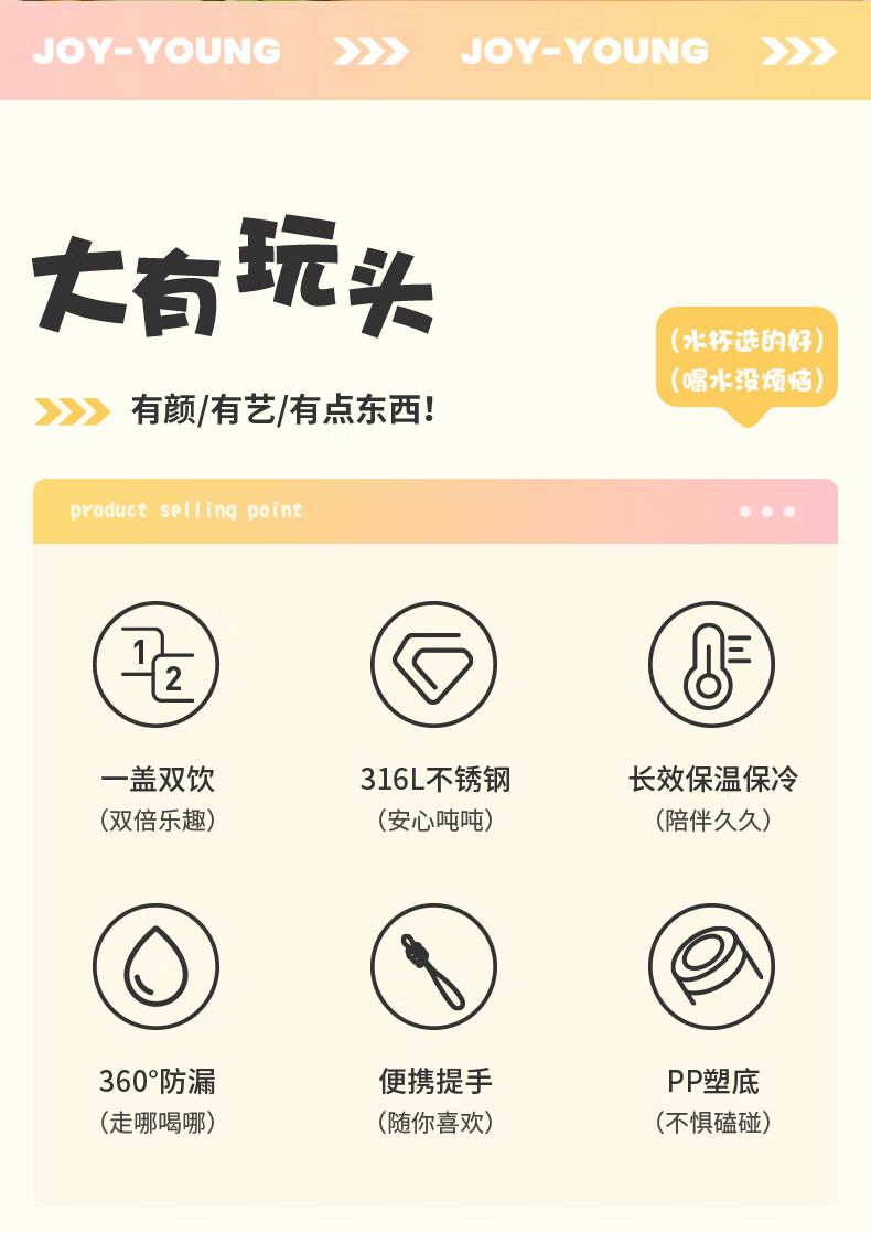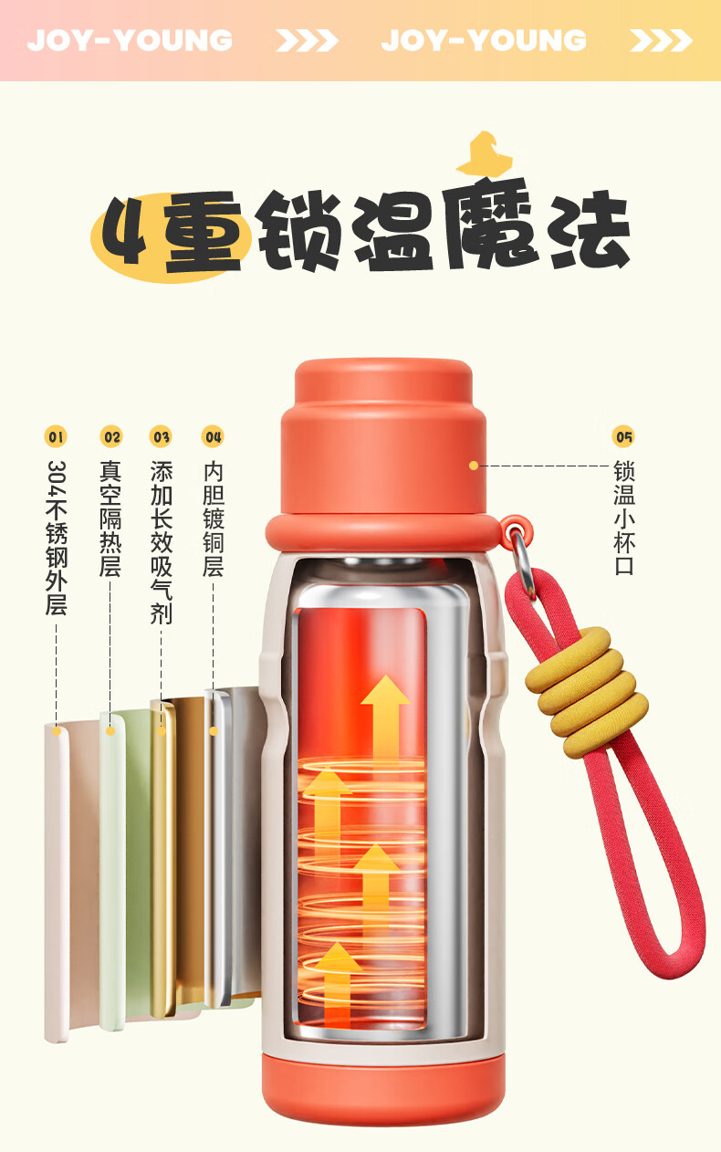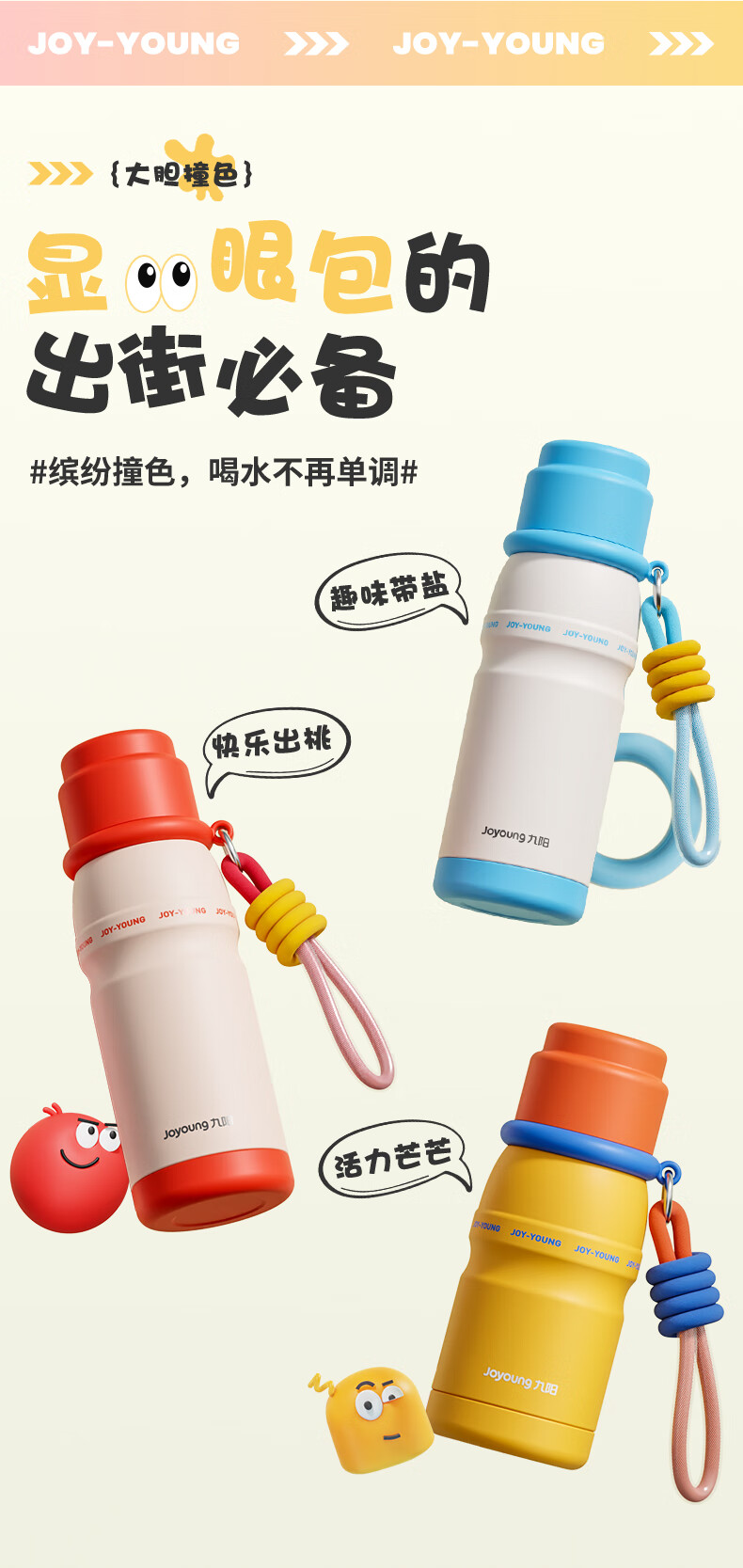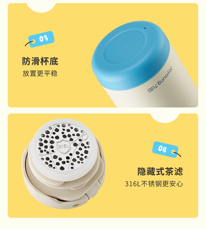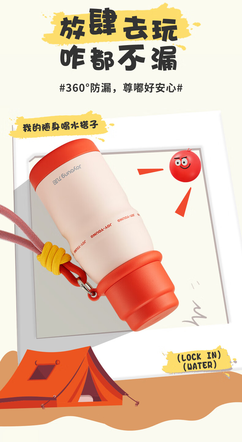 九阳找乐子保温杯316L不锈钢水杯户外男女便携双饮长效保温保冷杯