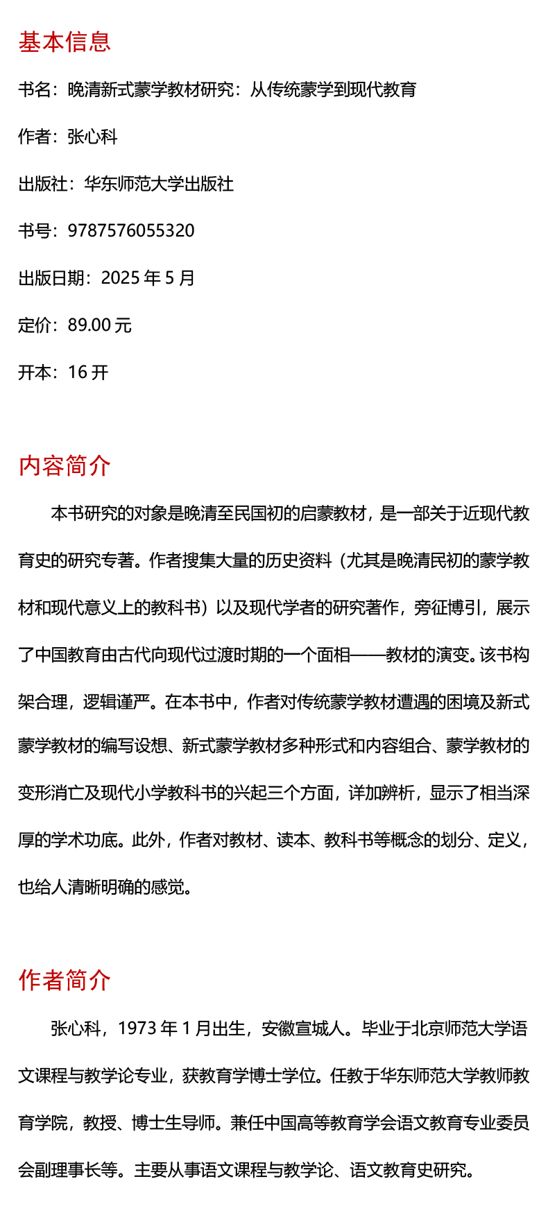 晚清新式蒙学教材研究 从传统蒙学到现代教育 张心科 近代教育史