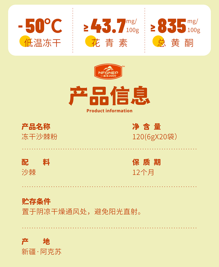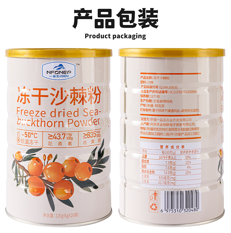 【新疆好物】新疆冻干沙棘粉 绿色自然 营养守护 果香十足 120g/罐