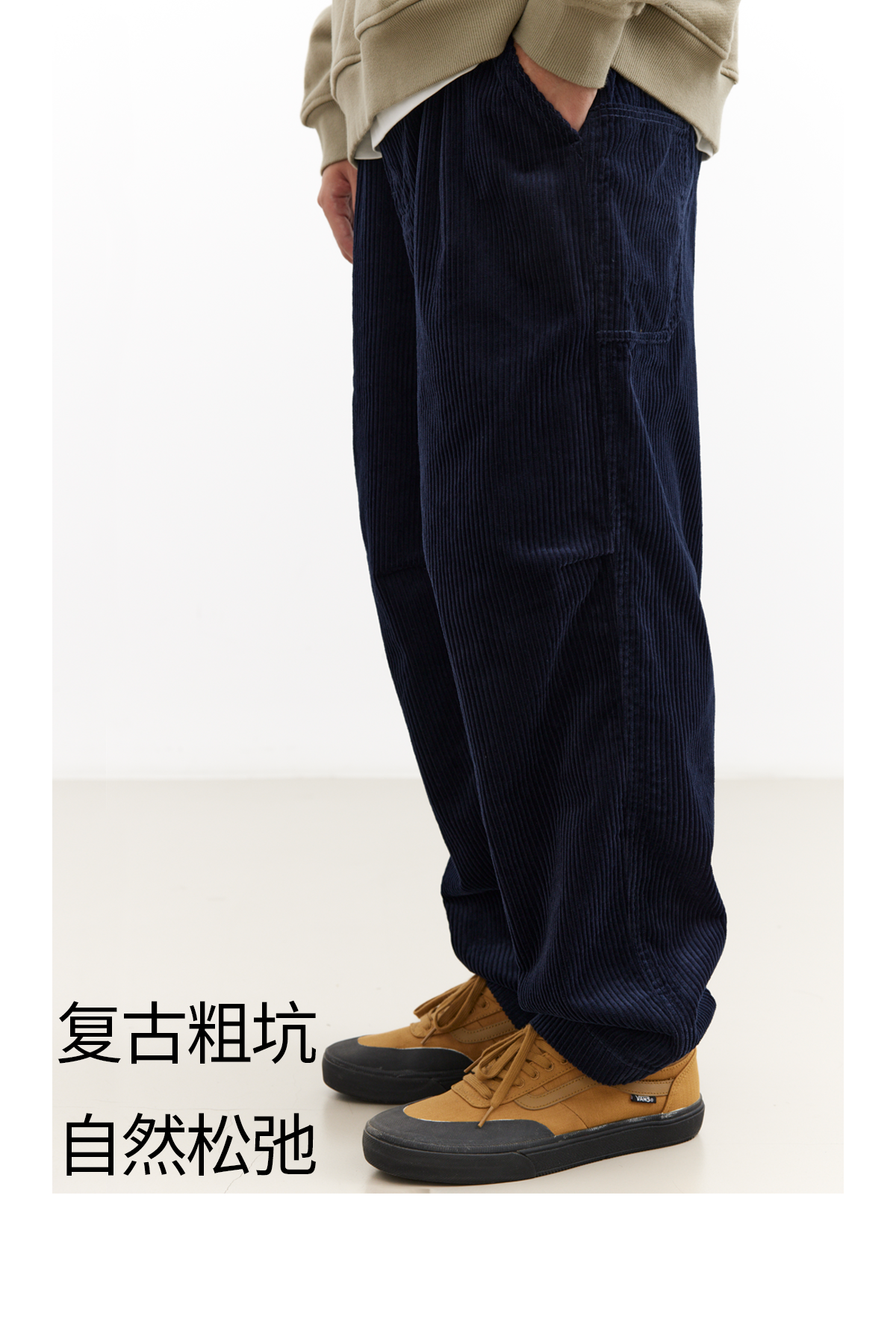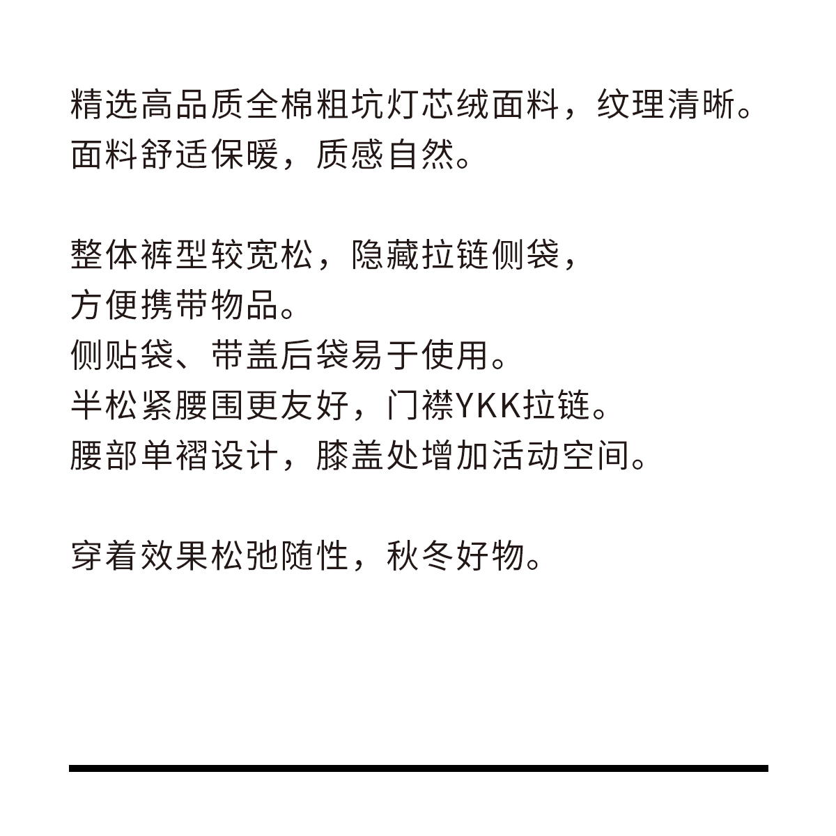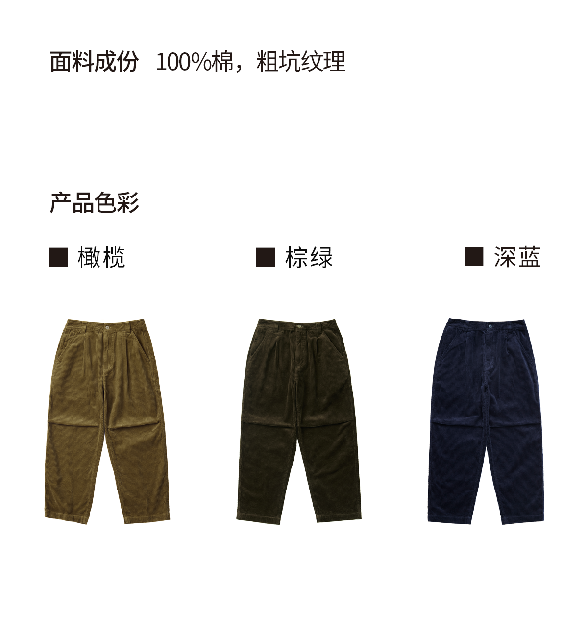 吃茶去chichaqu25重磅粗坑灯芯绒锥形单褶长裤宽松复古百搭