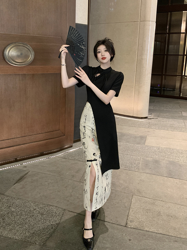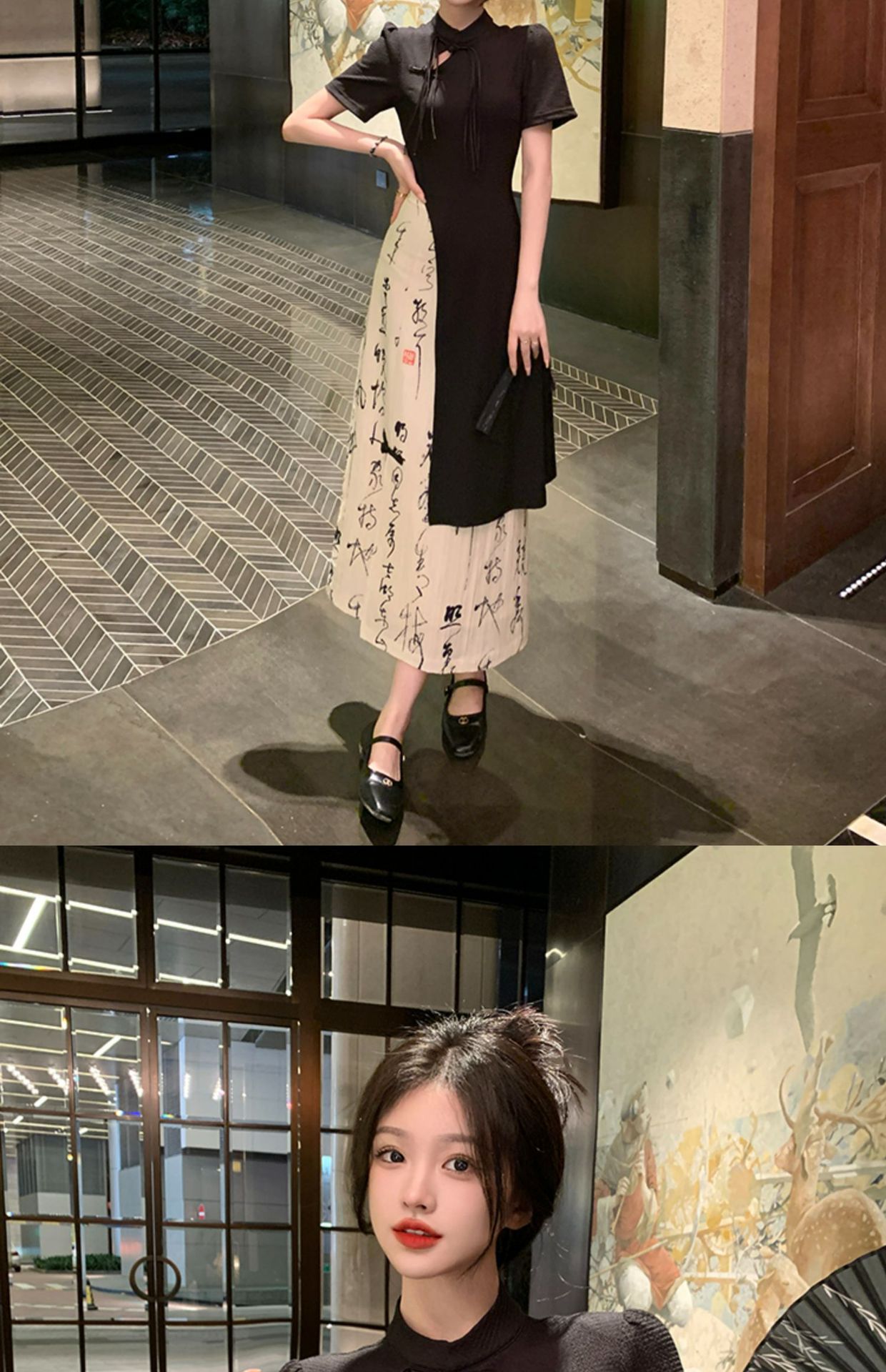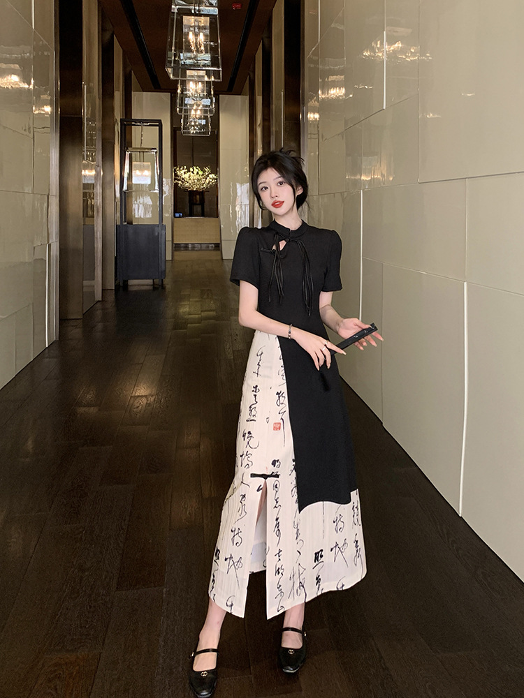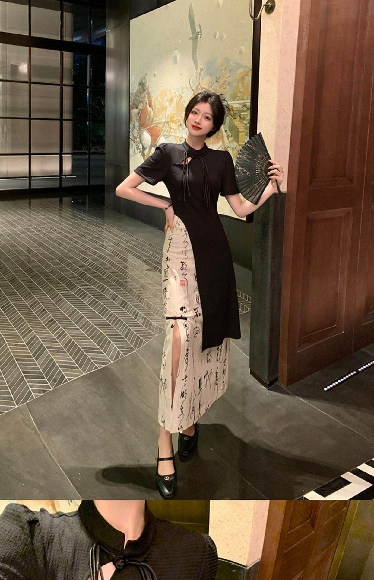 新中式国风复古高级感不规则书法半身裙时尚旗袍两件套装裙女夏季_HLY