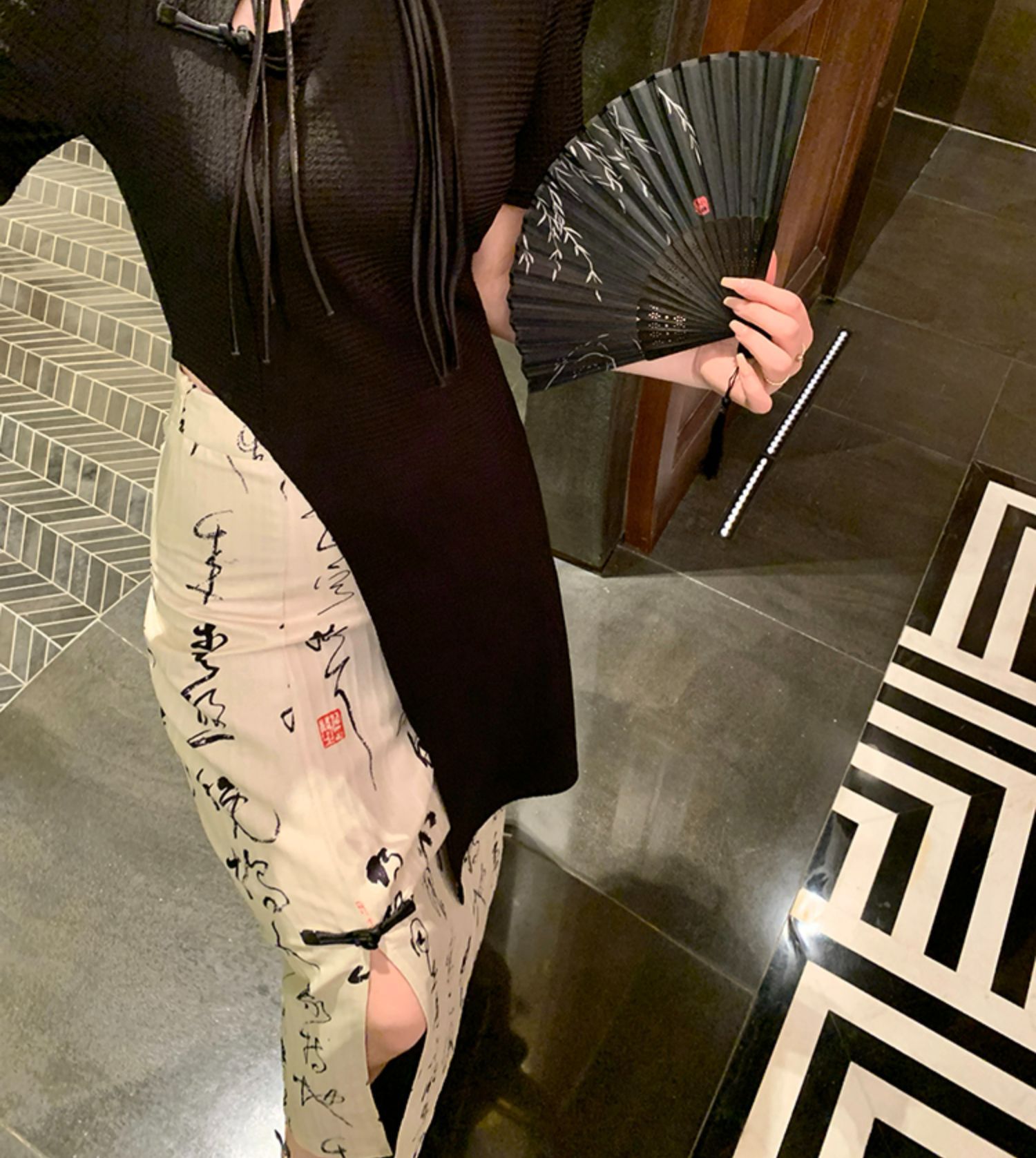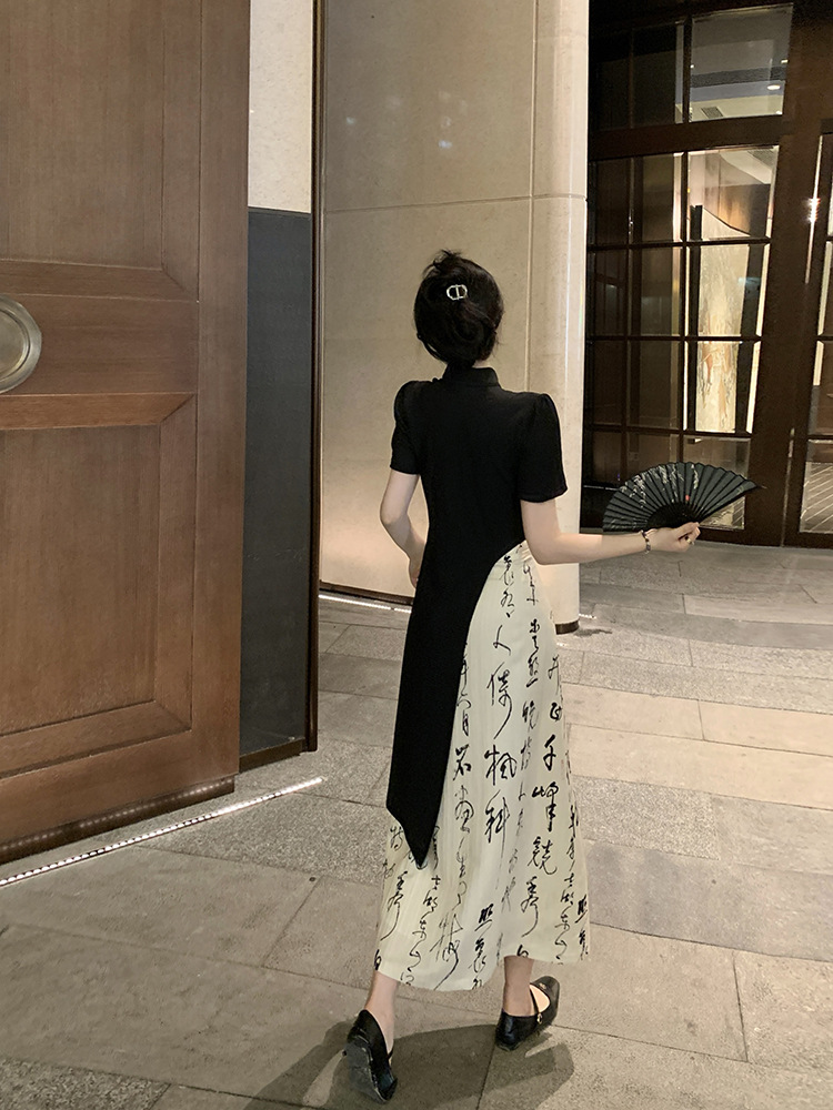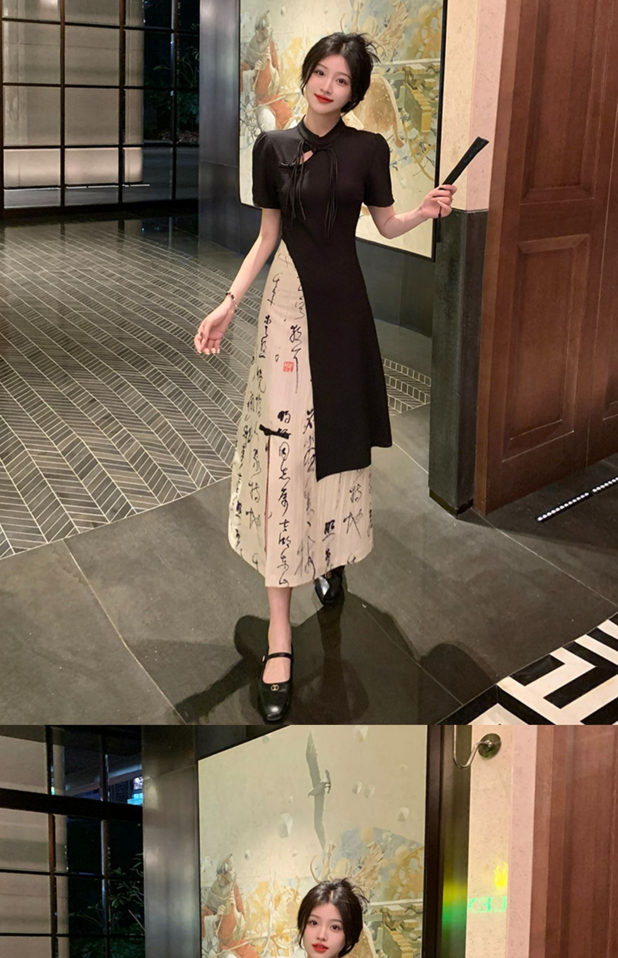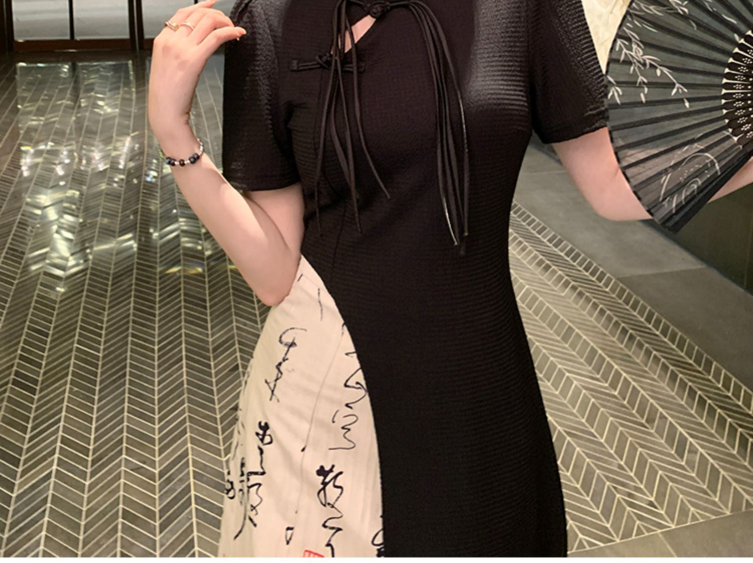 新中式国风复古高级感不规则书法半身裙时尚旗袍两件套装裙女夏季_HLY