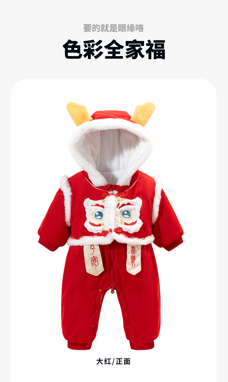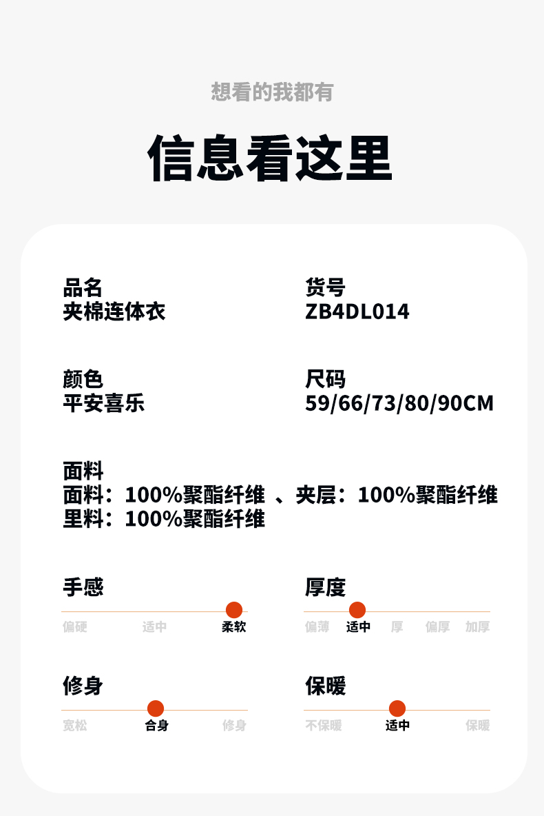 贝贝怡童装新生婴幼儿童夹棉连体衣春秋冬保暖加厚男女童棉服哈衣ZB4DL014