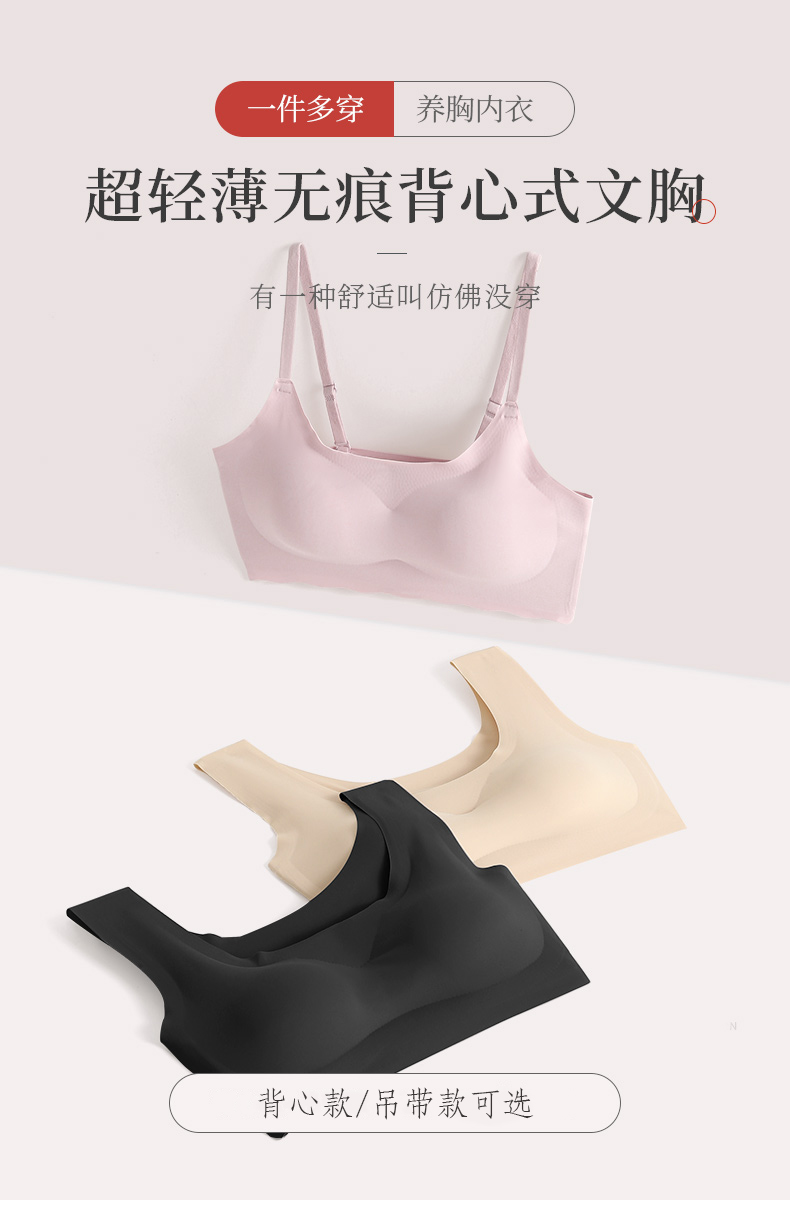 【爆款59元两件】一片式冰丝无痕文胸 无钢圈束缚 裸感亲肤透气 不紧勒不上滑 聚拢收副乳 宛如云朵般绵软舒适
