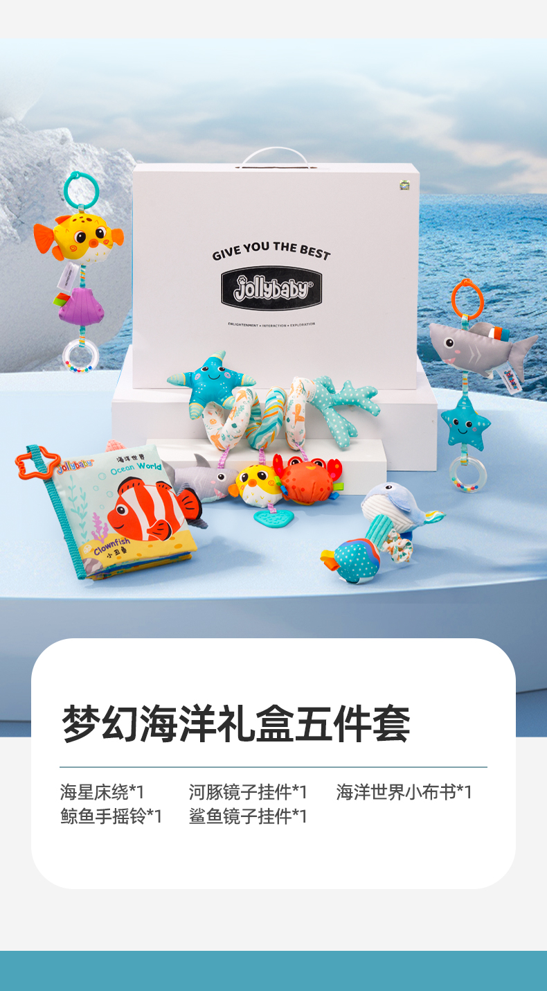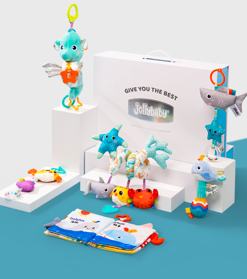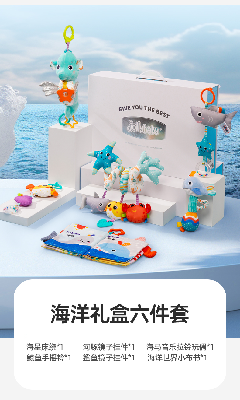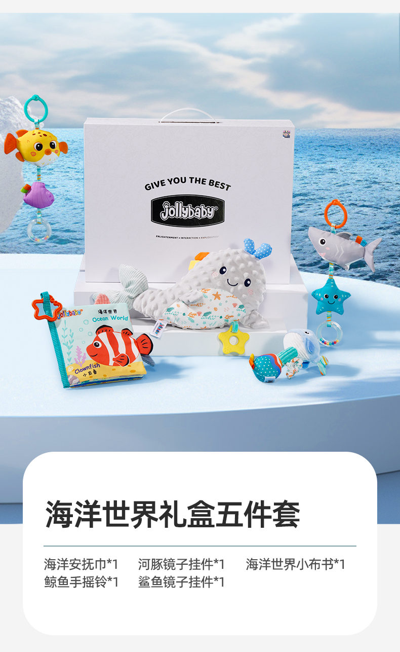 jollybaby新生儿礼盒手摇铃宝宝满月礼婴儿安抚玩具初生见面礼0-1