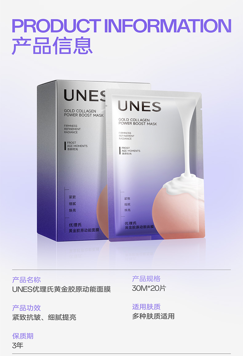 【新品首发】优理氏黄金胶原动能面膜 紧致轮廓 淡化纹路 改善脆弱 膨弹紧致
