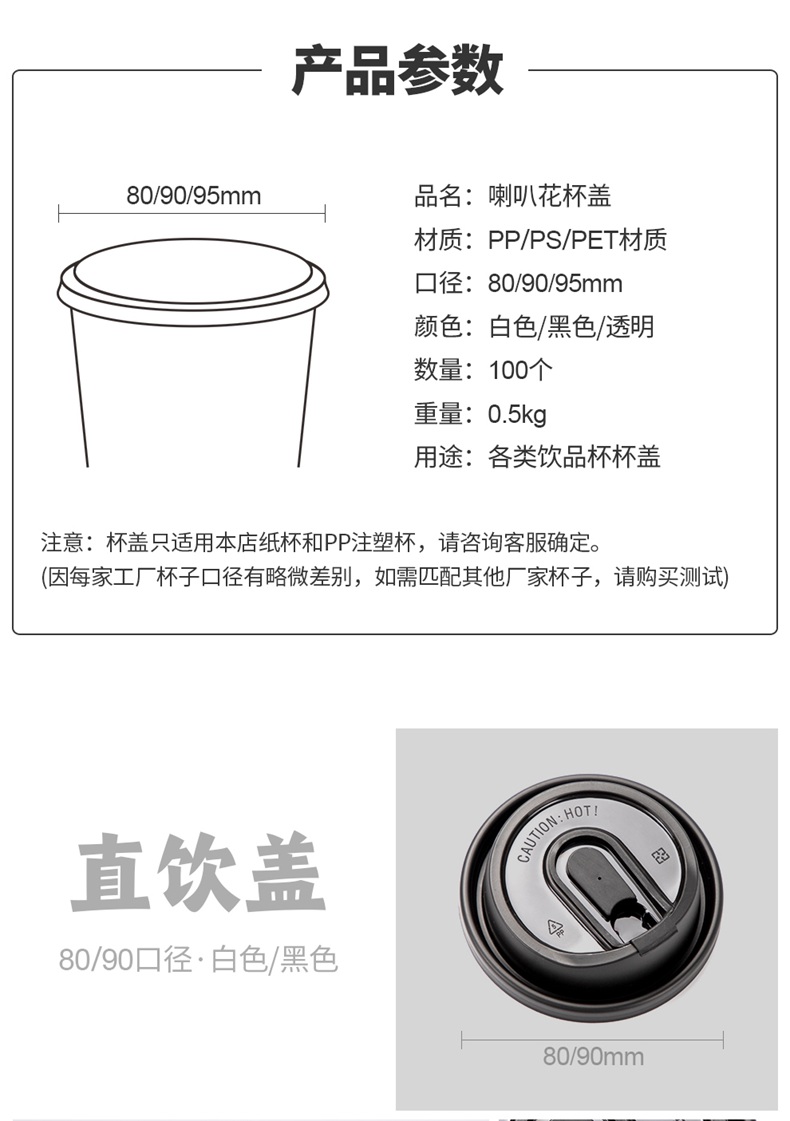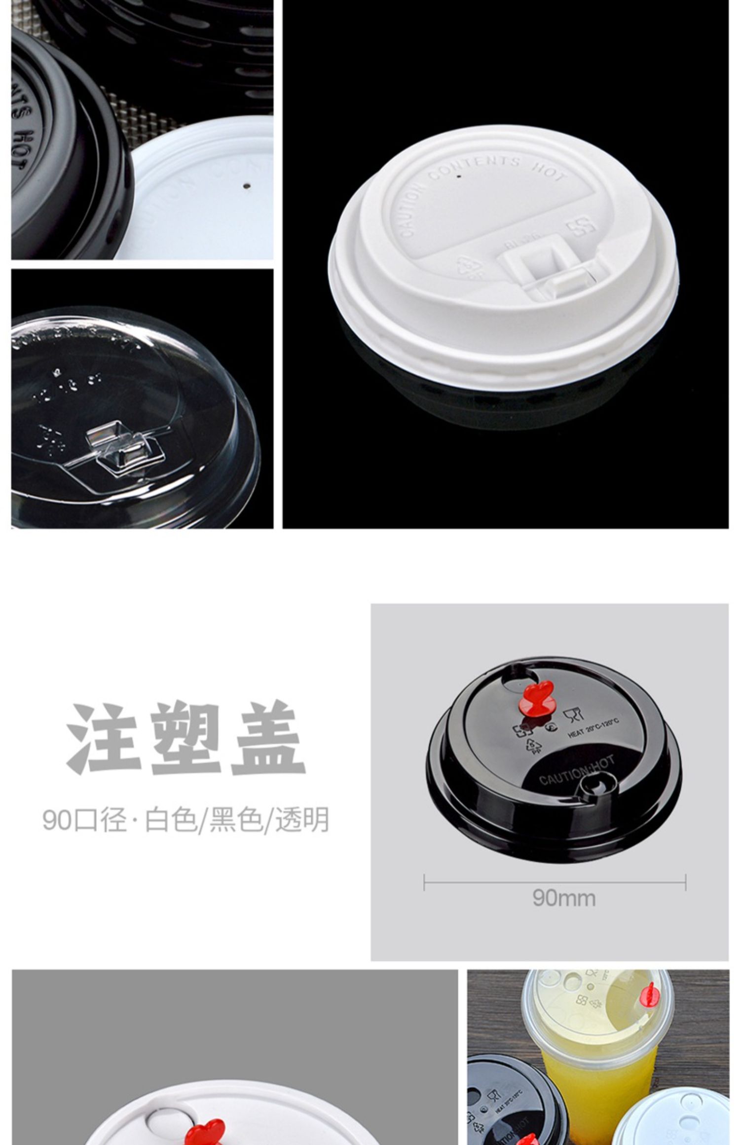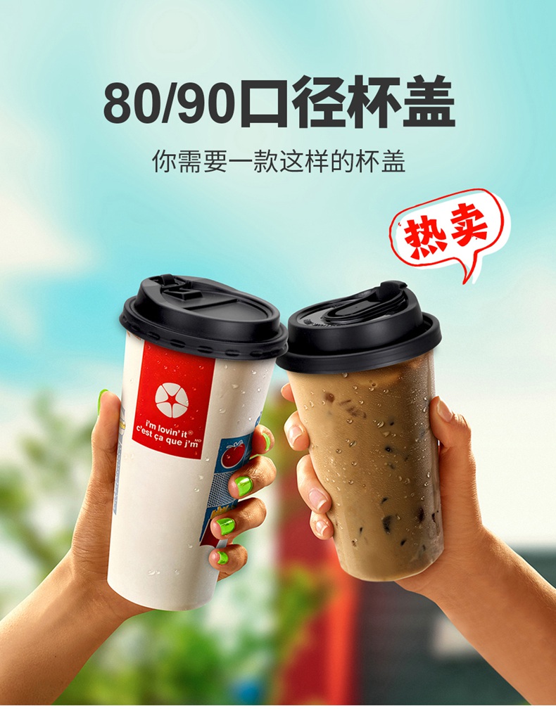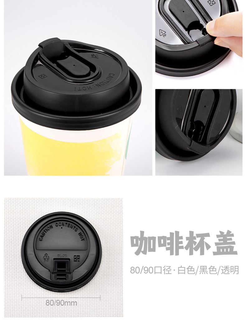 喇叭花80/90口径开关口一次性咖啡盖加厚翻口黑盖奶茶纸杯盖100只