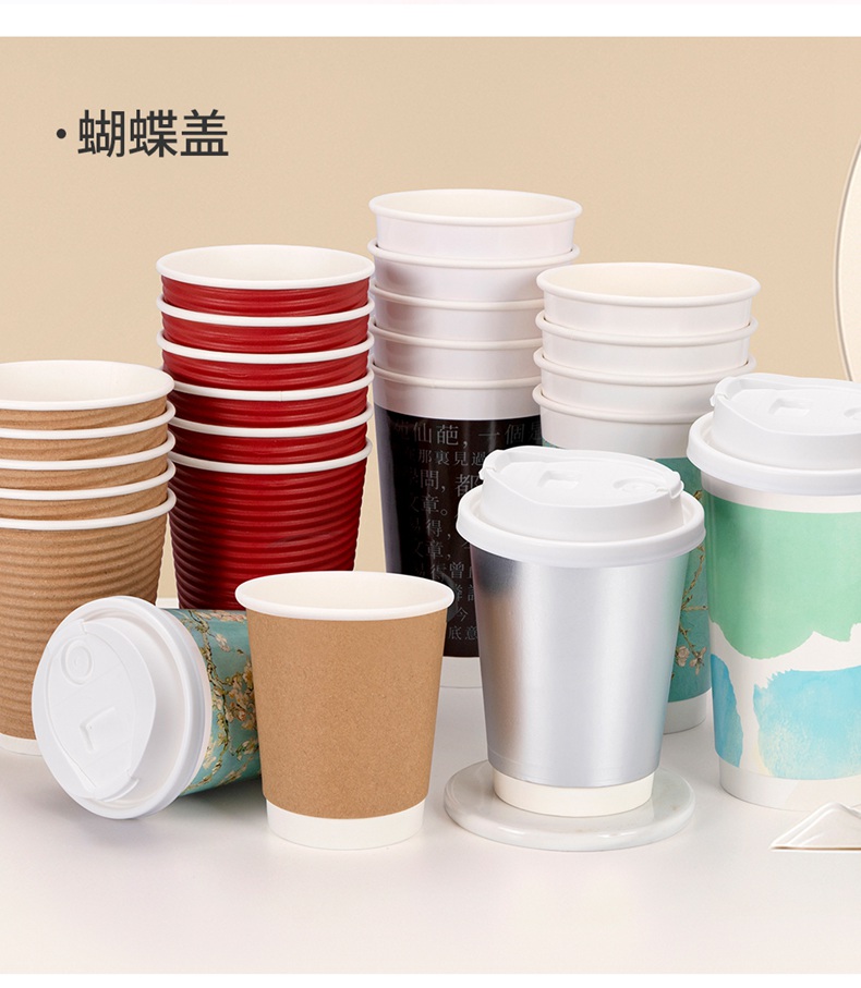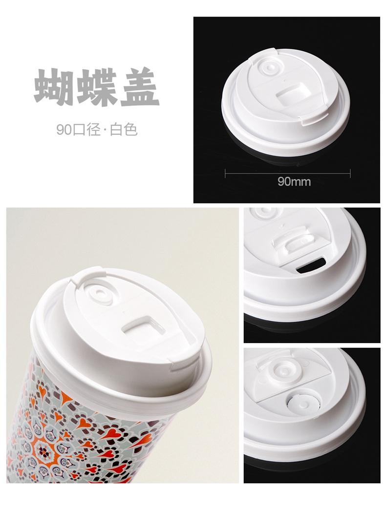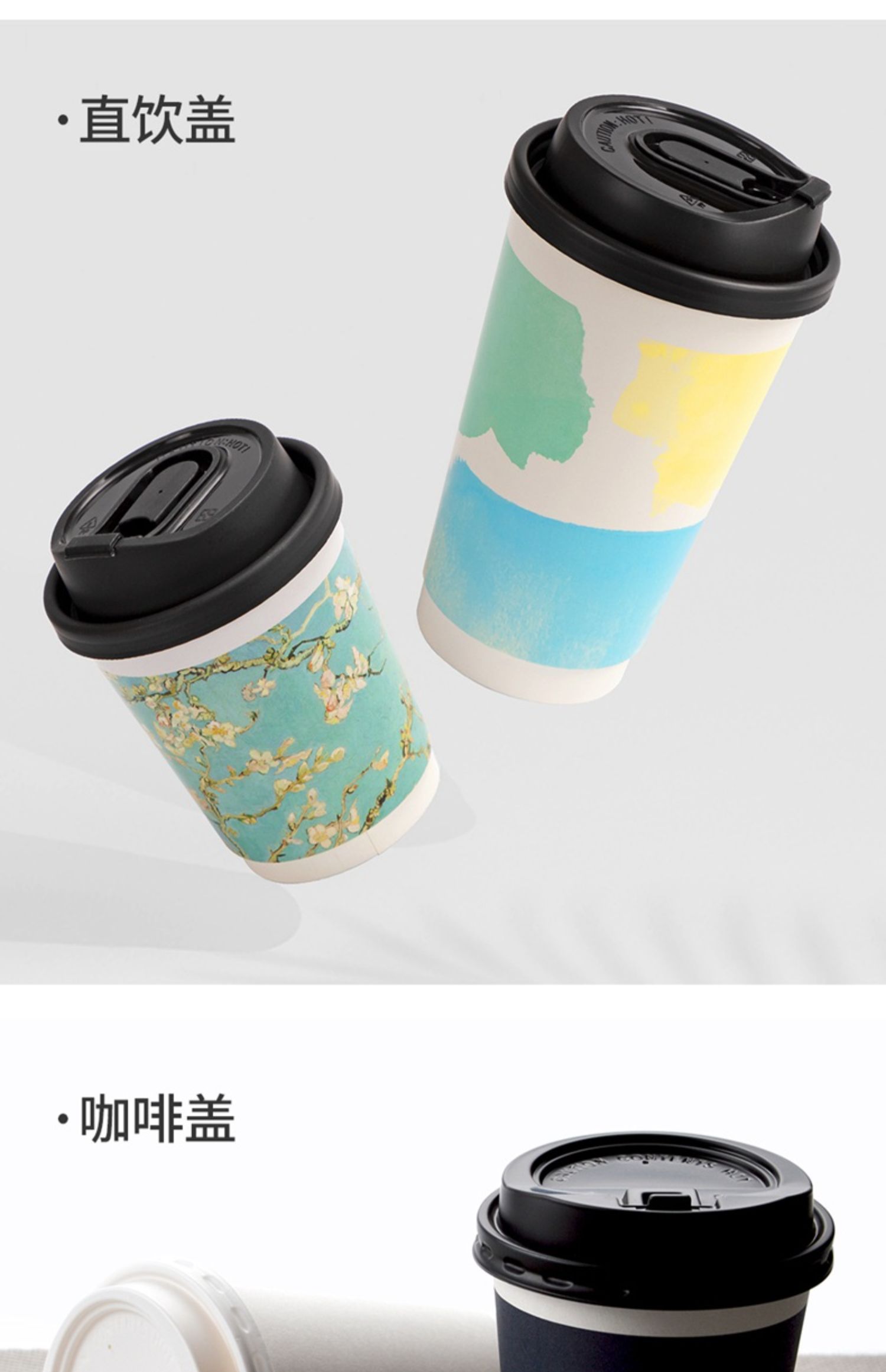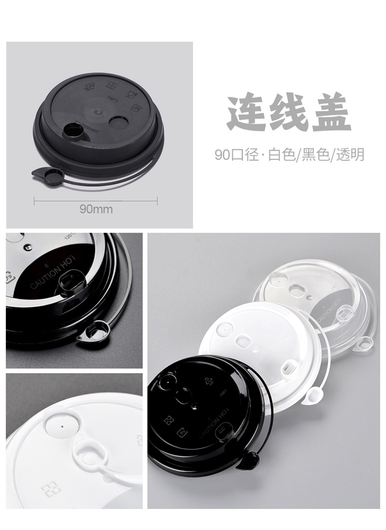 喇叭花80/90口径开关口一次性咖啡盖加厚翻口黑盖奶茶纸杯盖100只