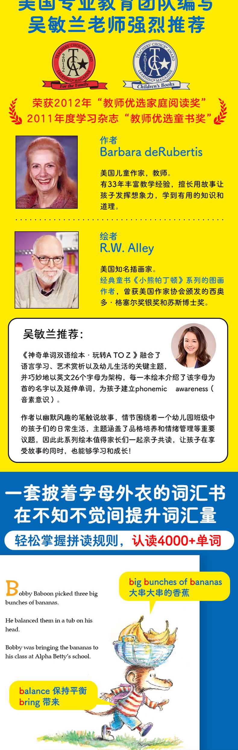 神奇单词双语绘本·玩转A TO Z:全26册 点读版3-6岁成长教育经典绘本宝宝英语词汇书吴敏兰推荐提升心理韧性儿童心理正向引导(【美】芭芭拉·迪鲁伯提斯/著【美】R·W·阿利/绘 ; 海豚传媒译.)